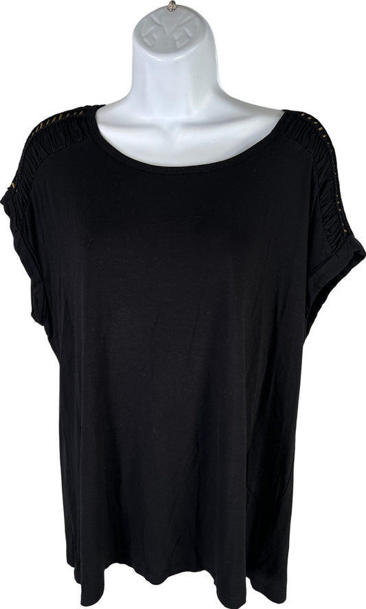 White House Black Market Womens Black Metallic Cold Shoulder 3/4 Sleeve Shirt -L