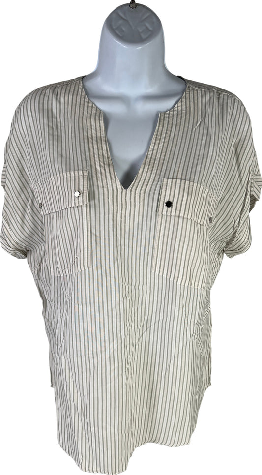 Ann Taylor Women’s Black/White Striped Short Puff Sleeve Blouse - S