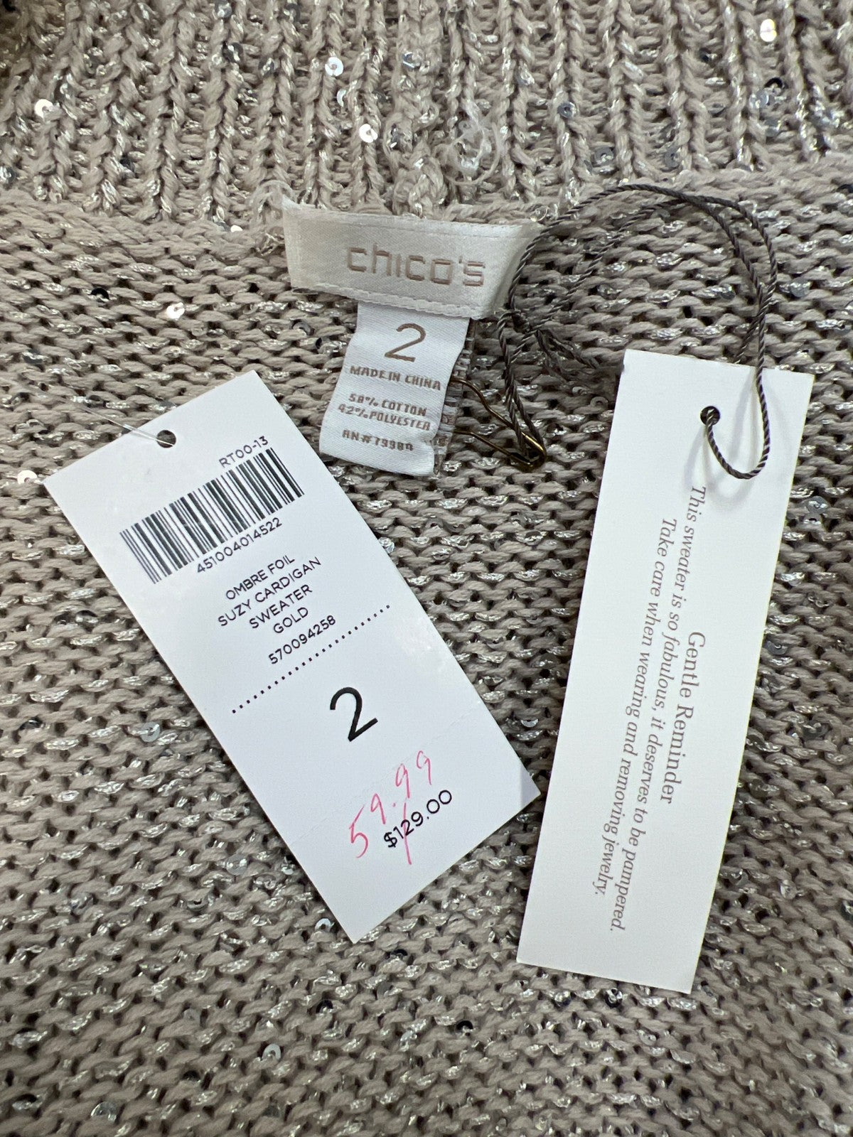 Chico’s Women’s Beige/Gold Ombre Foil Sequin Suzy Cardigan Sweater - 2/US L