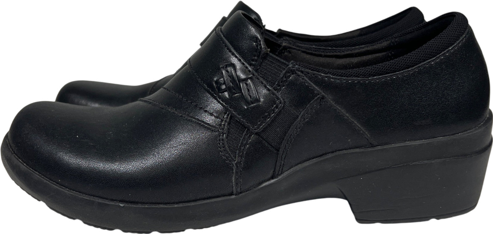 Clarks Collection Women’s Black Leather Slip On Walking Shoes - 8.5