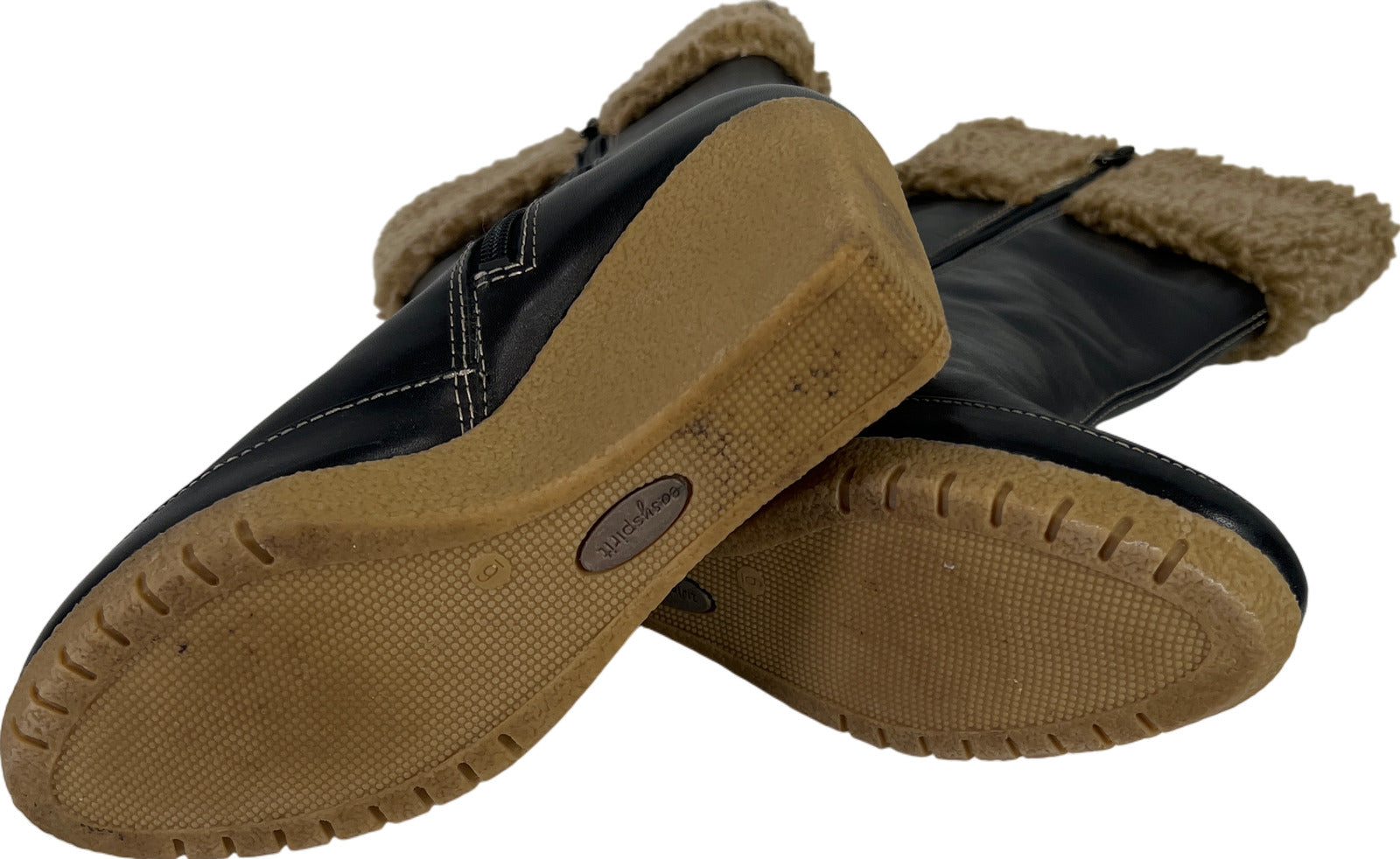 Easy Spirit Women’s Black Leather Faux Fur Side Zip Wedge Mid Calf Boots - 6