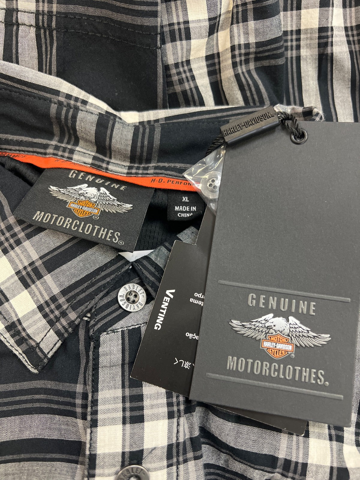 Harley Davidson Men’s Black/White Plaid Performance Button Up Shirt - XL