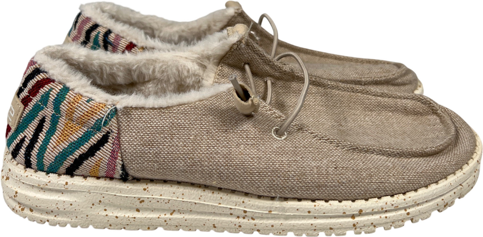 HeyDude Women’s Beige Funk Wool Wendy Lined Slip On Shoes - 8