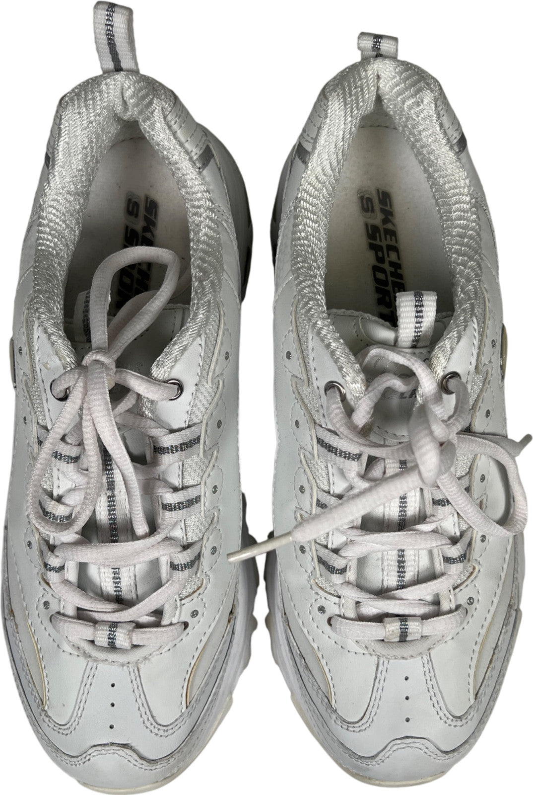 Skechers Women’s White D’Lites Leather Lace Up Walking Sneakers - 7