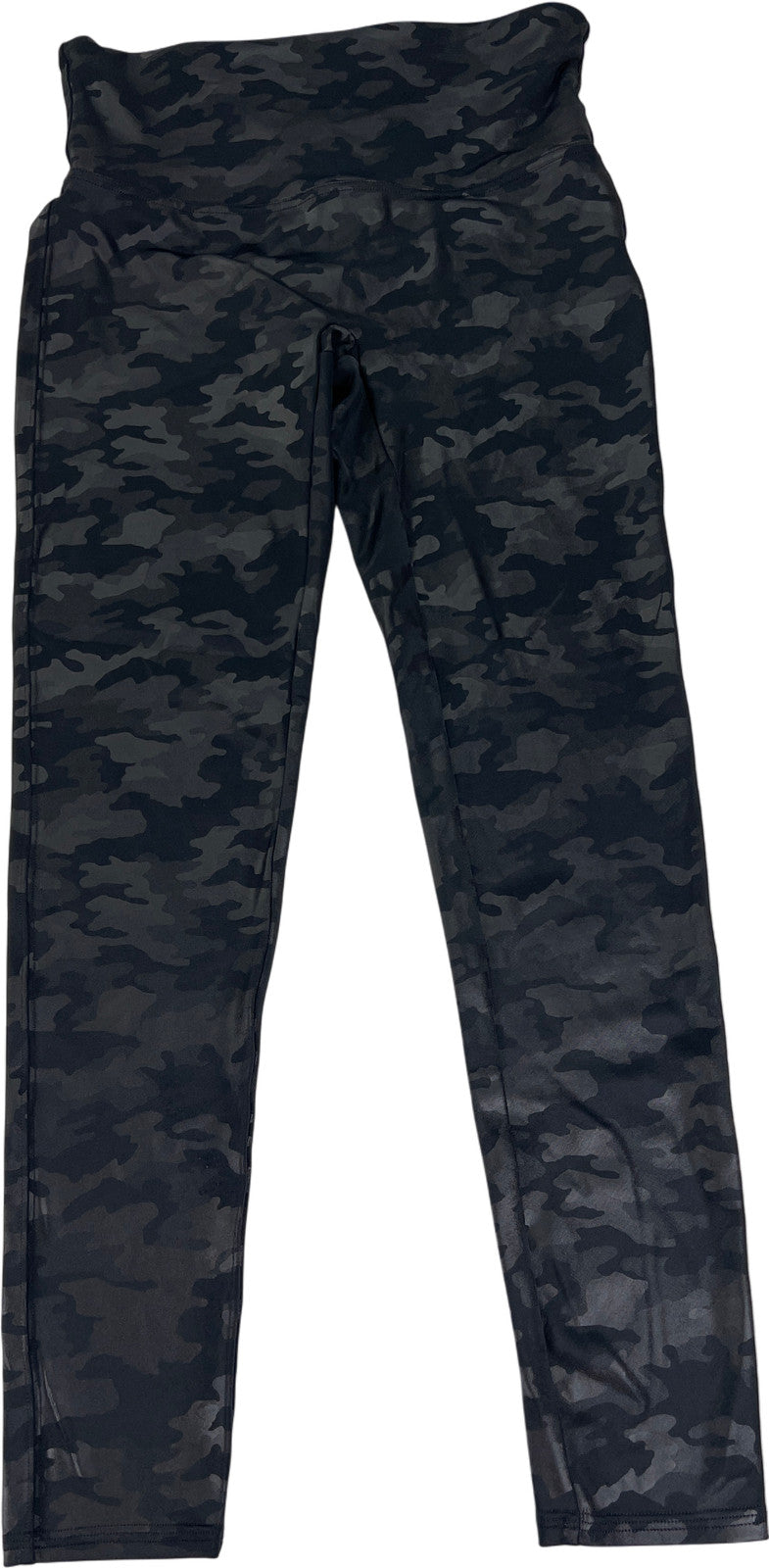 Spanx Women’s Black Faux Leather Camo Leggings - L Petite