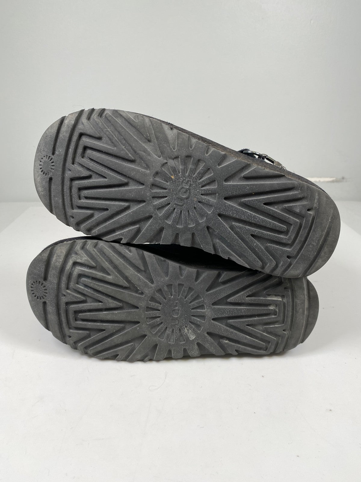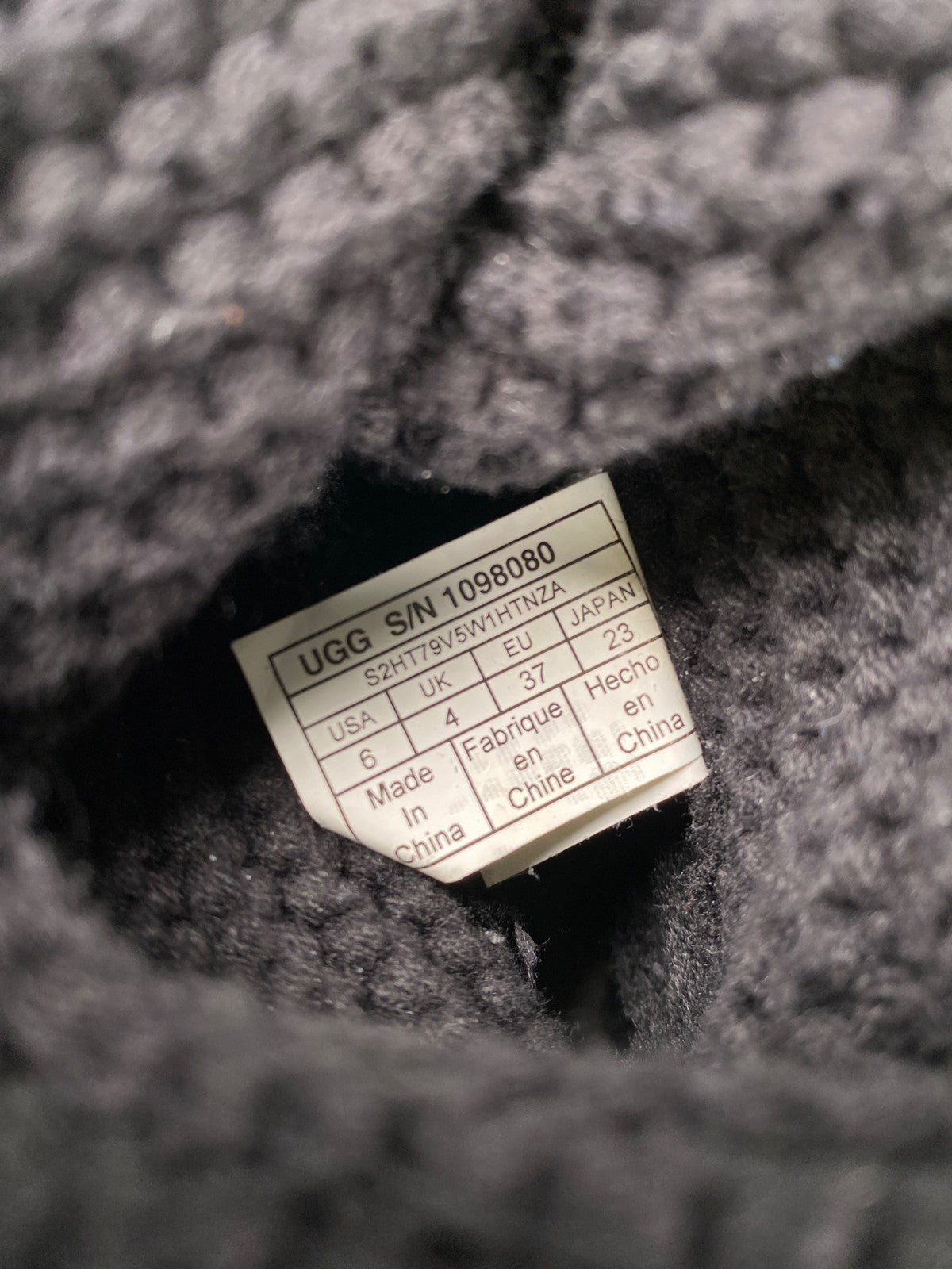 UGG Women’s Black Knit Purl Strap Twinface Short Boots - 6