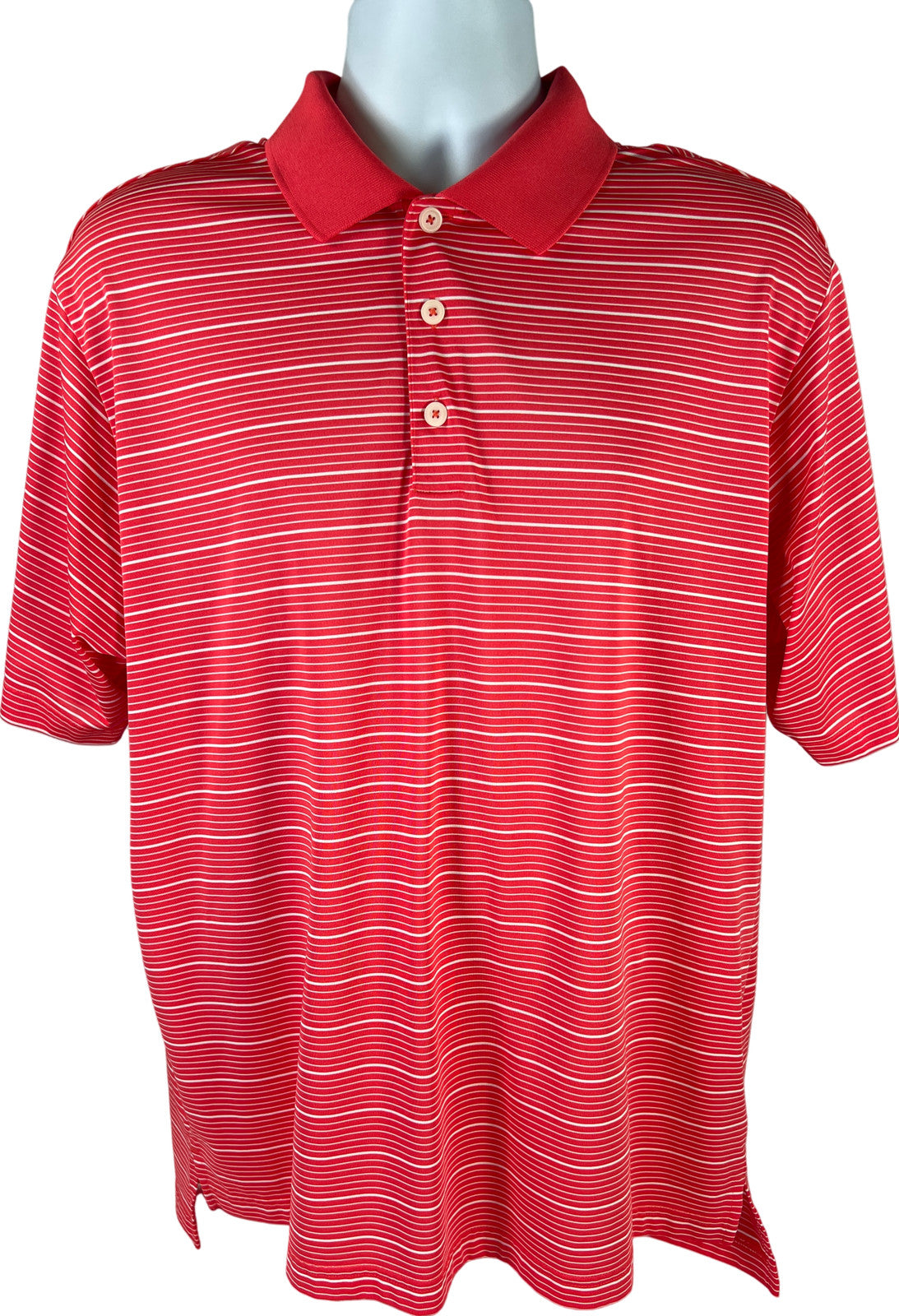 Adidas Men’s Red Striped Short Sleeve Athletic Climalite Golf Polo - L