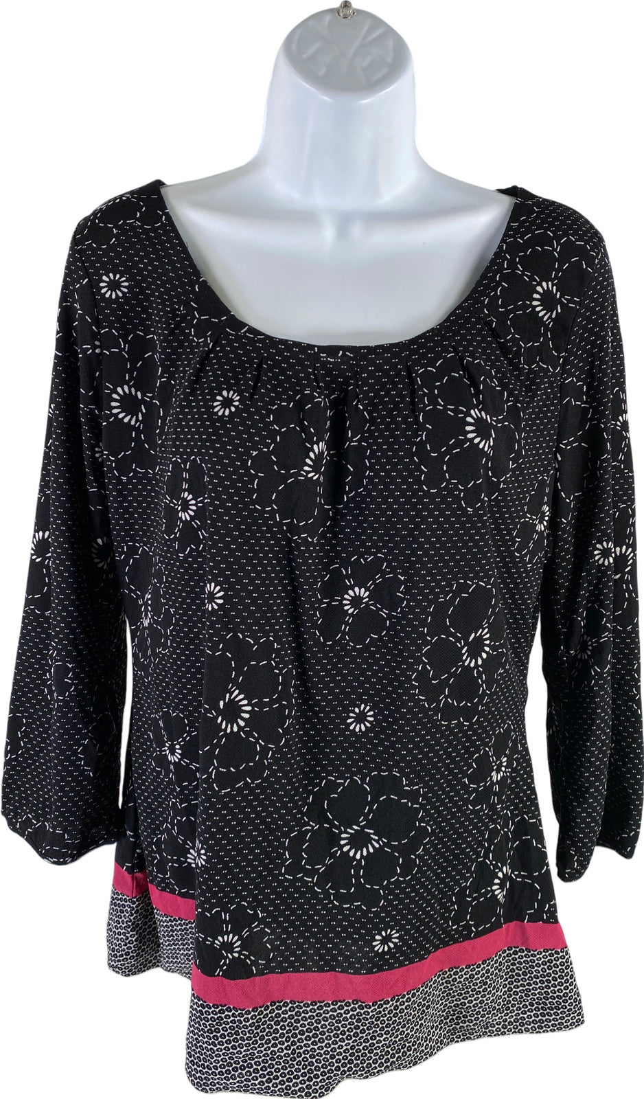 Ann Taylor Women’s Black Floral 3/4 Sleeve Blouse - L