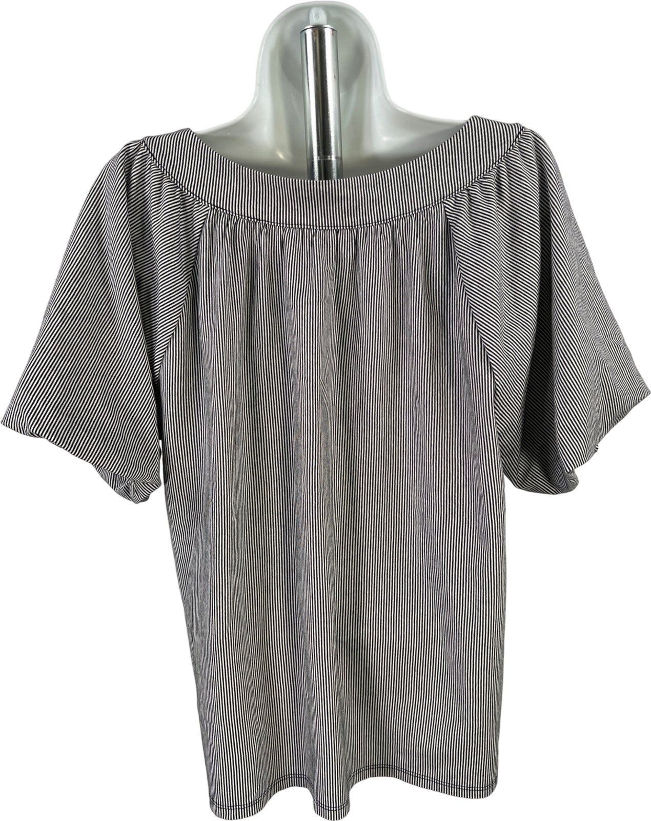 Ann Taylor Women’s Black/White Striped Short Puff Sleeve Blouse - S