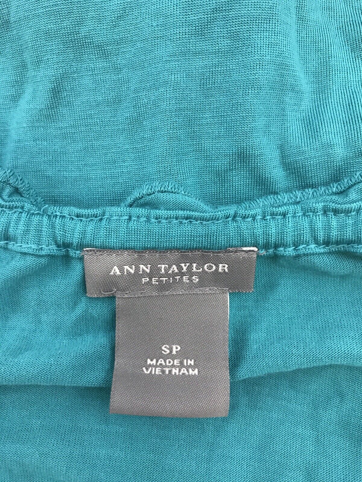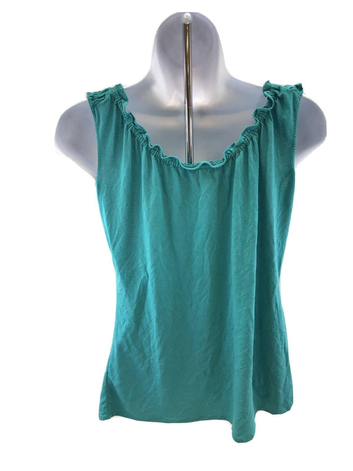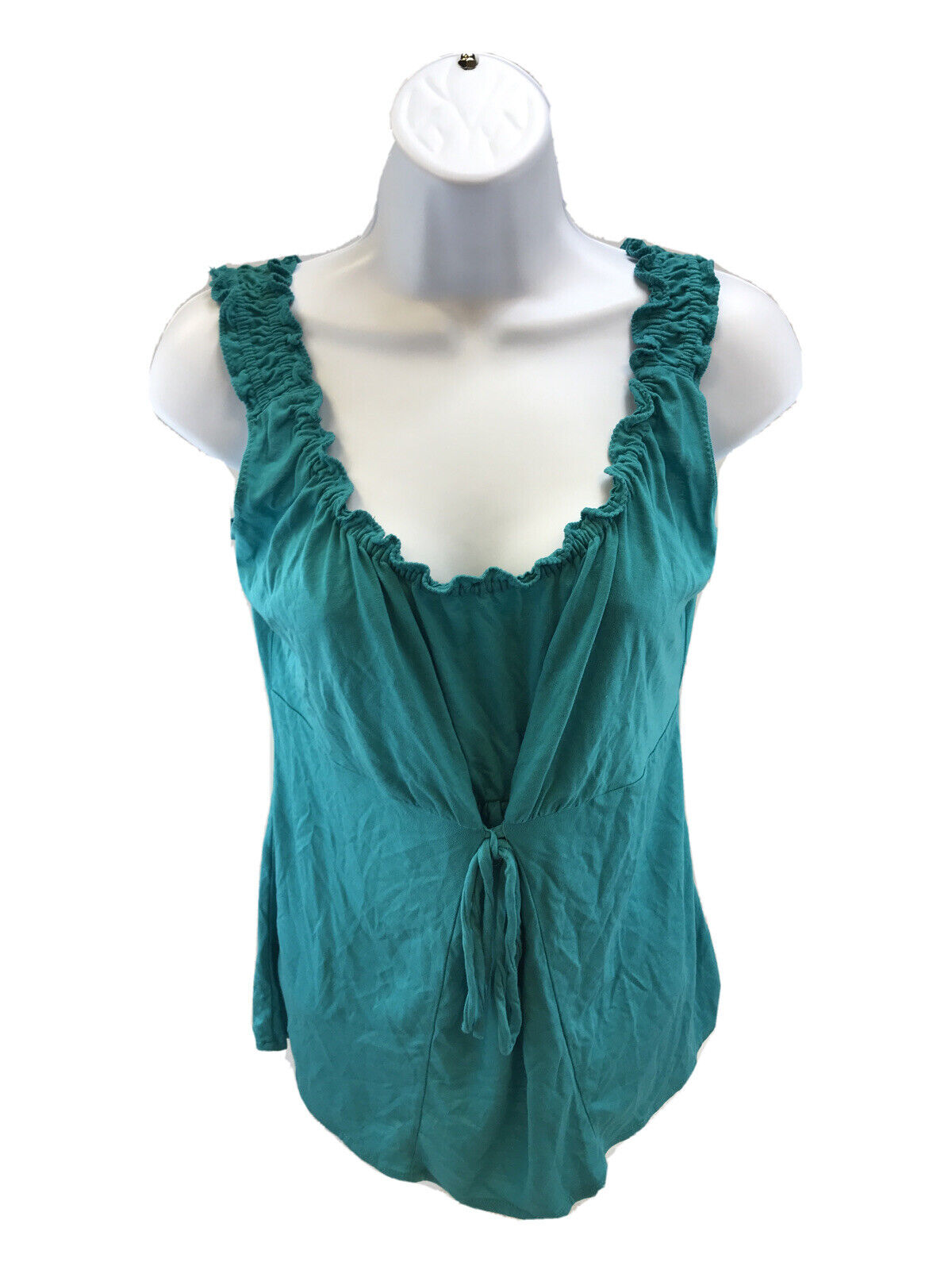 Ann Taylor Women's Blue Ruffle Trim Tie Front Sleeveless Blouse Sz PS