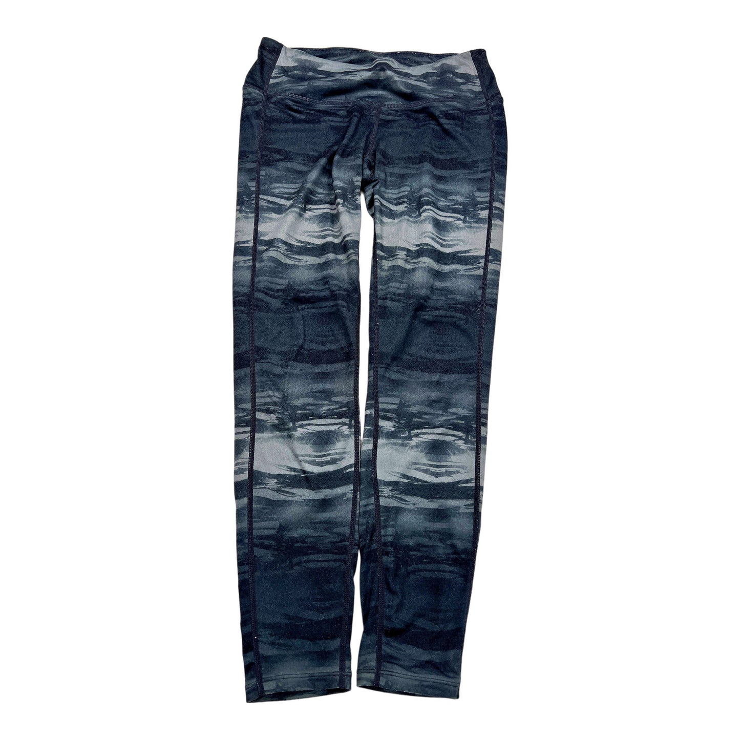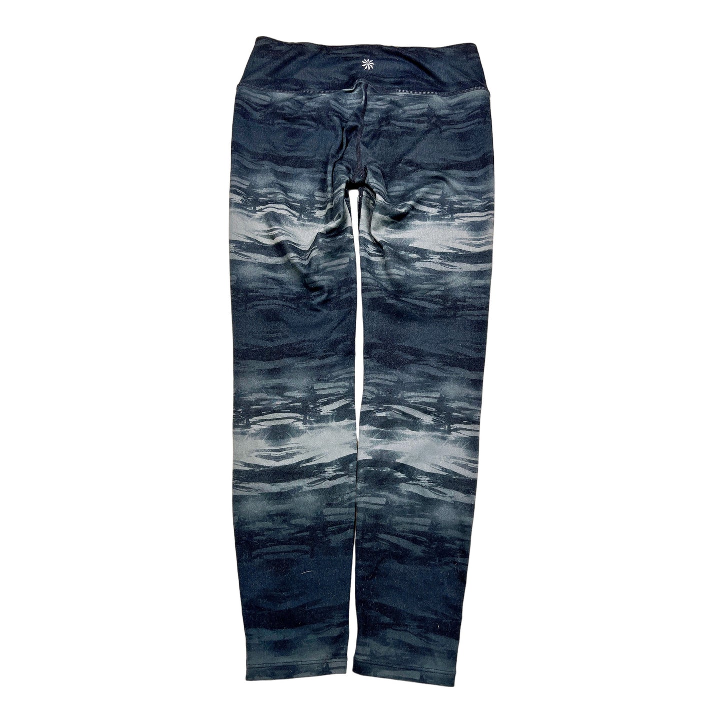 Elevate your workout wardrobe with these Athleta Women’s Black/Gray Gusset Athletic Leggings in size S. Made of a comfortable Polyester and Lycra blend, these leggings feature an abstract pattern and a skinny leg style. Perfect for all seasons, these pre-owned leggings are in great condition with minor wear.