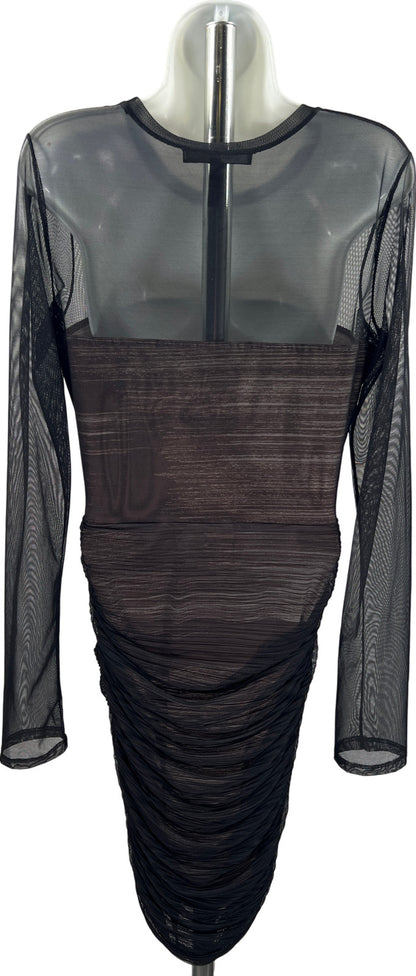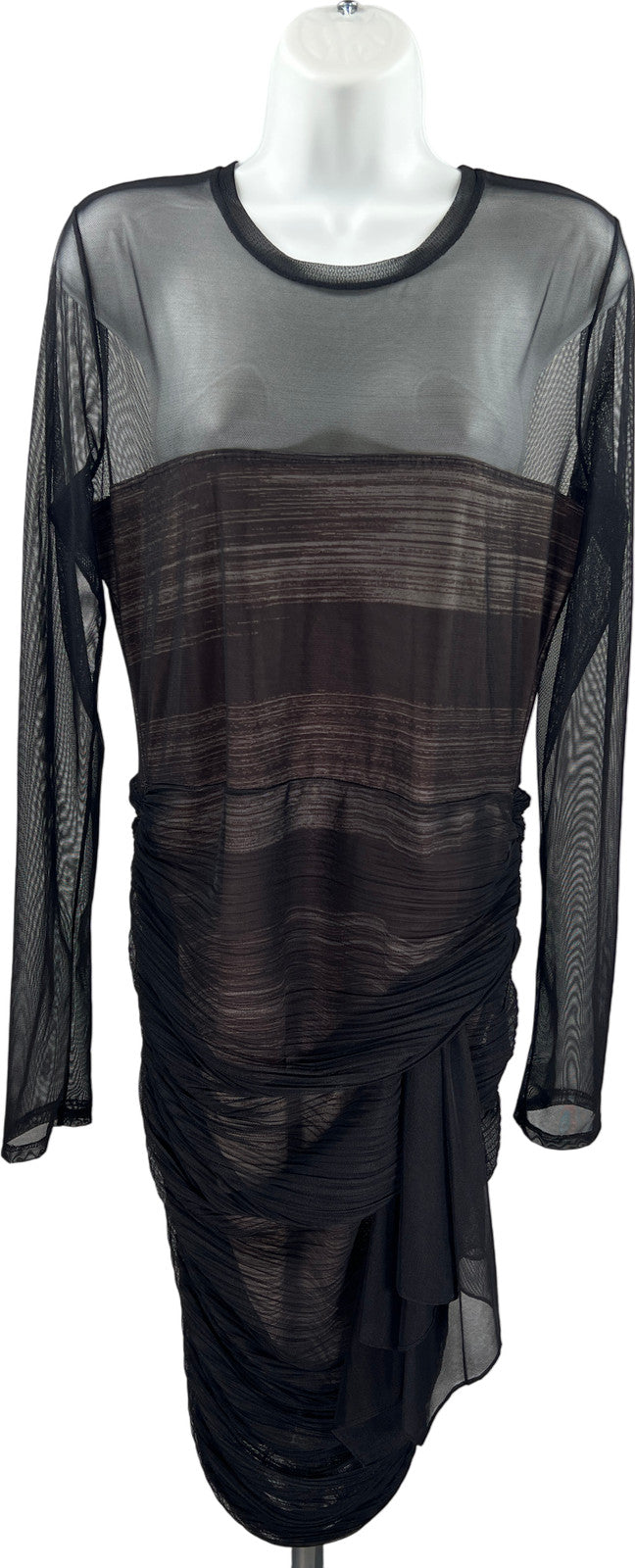 BCBGMaxazria Women’s Black Tracey Mesh Lined Ruched Knee Length Dress - L