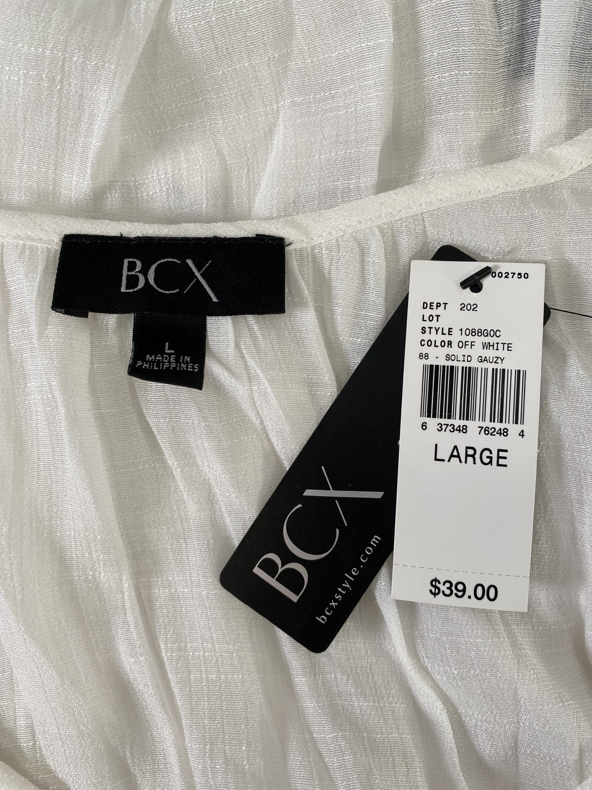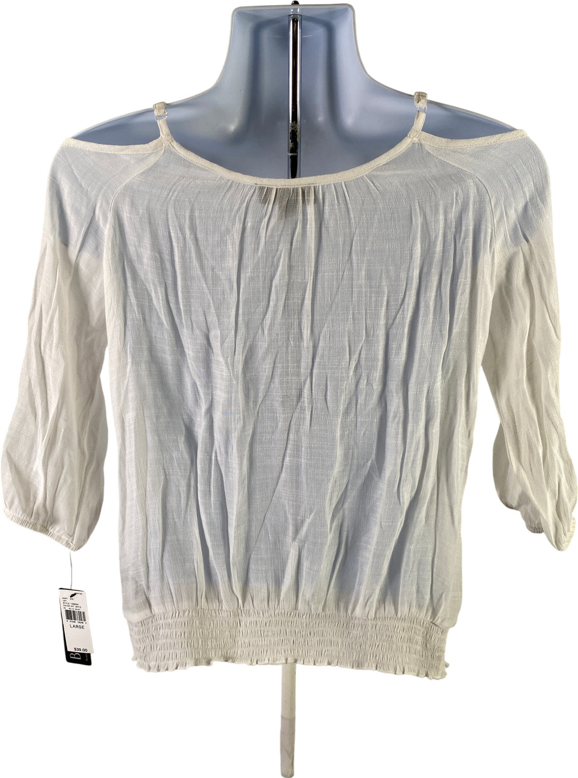 BCX Women’s White Cold Shoulder Boho Style Sheer Top - L