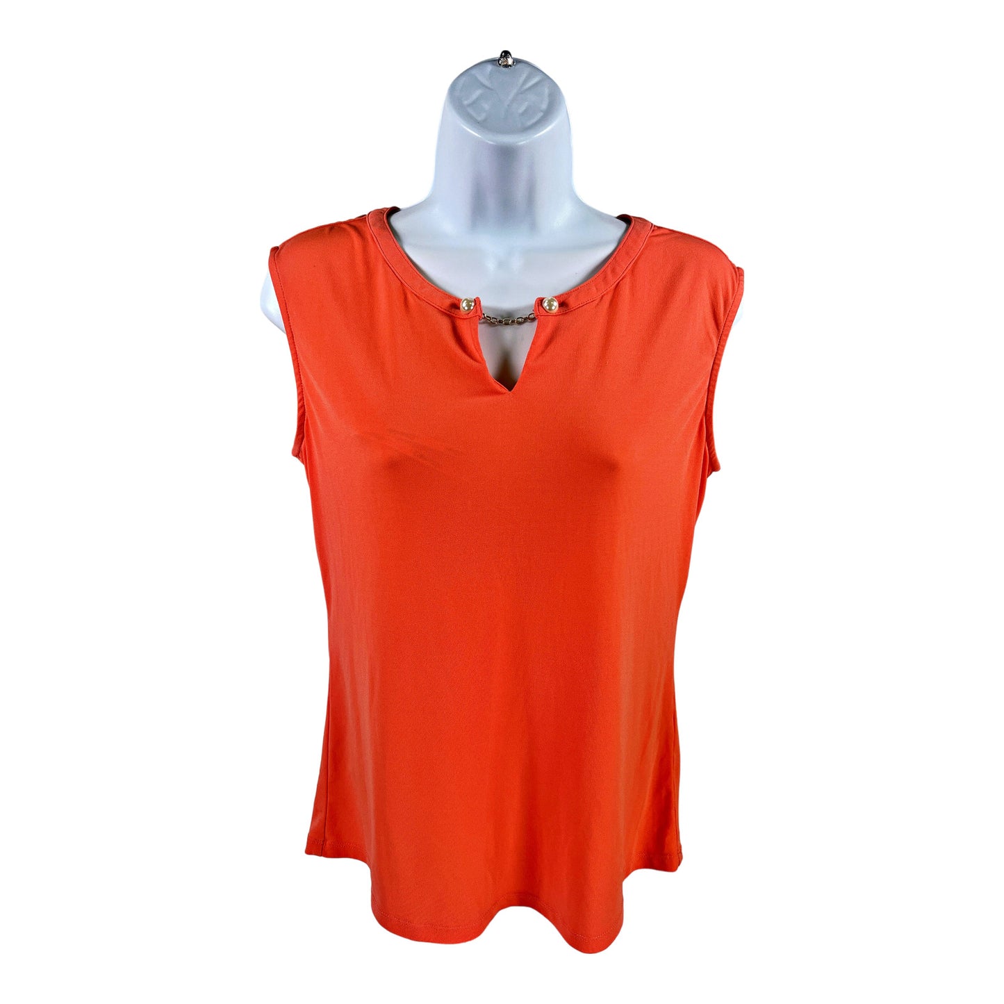 Shop the Calvin Klein Women’s Pink Sleeveless Blouse in size S. This pre-owned item is in excellent condition with no flaws. Made of polyester and spandex, ideal for casual wear in all seasons. V-Neck with metal accents, perfect for a basic yet stylish look.