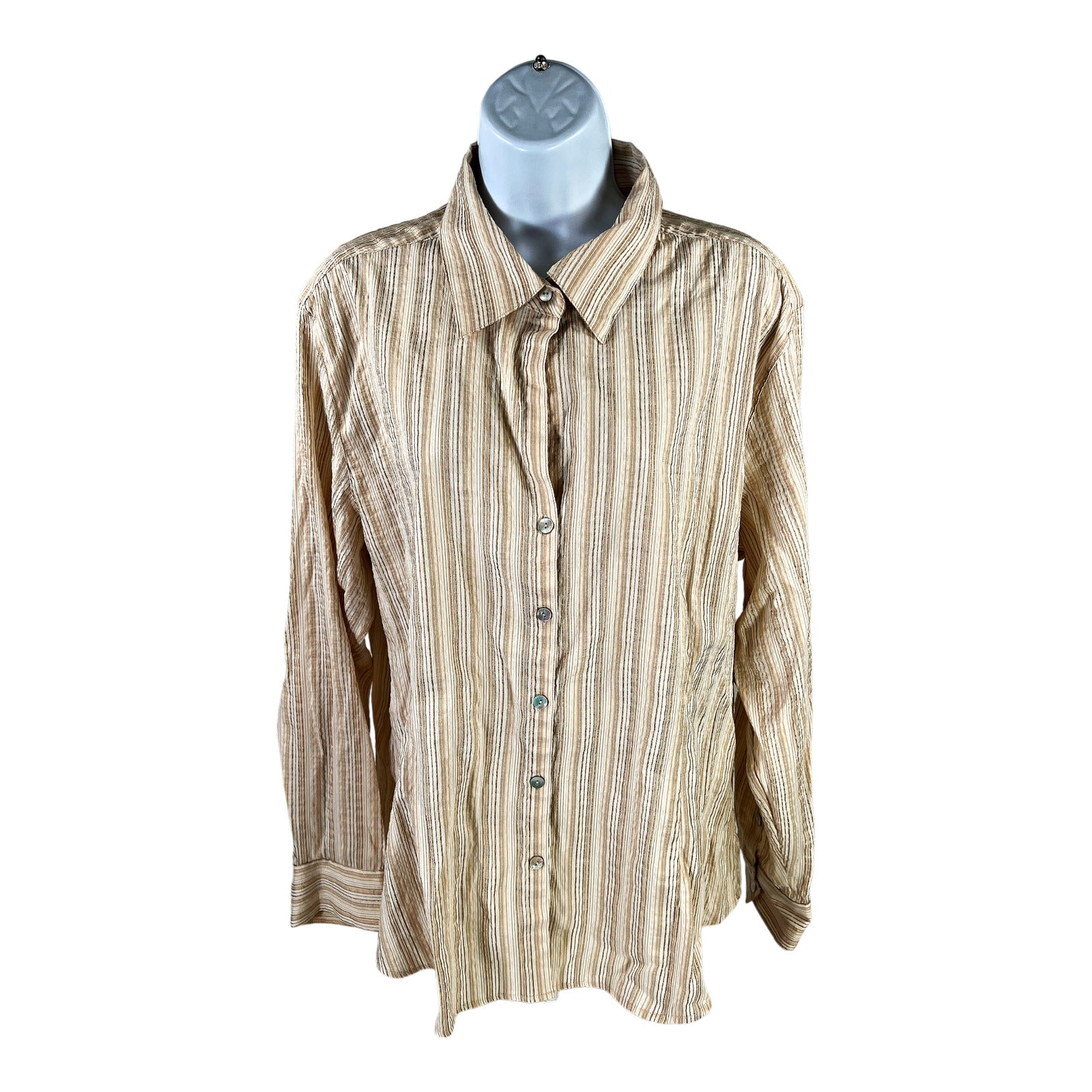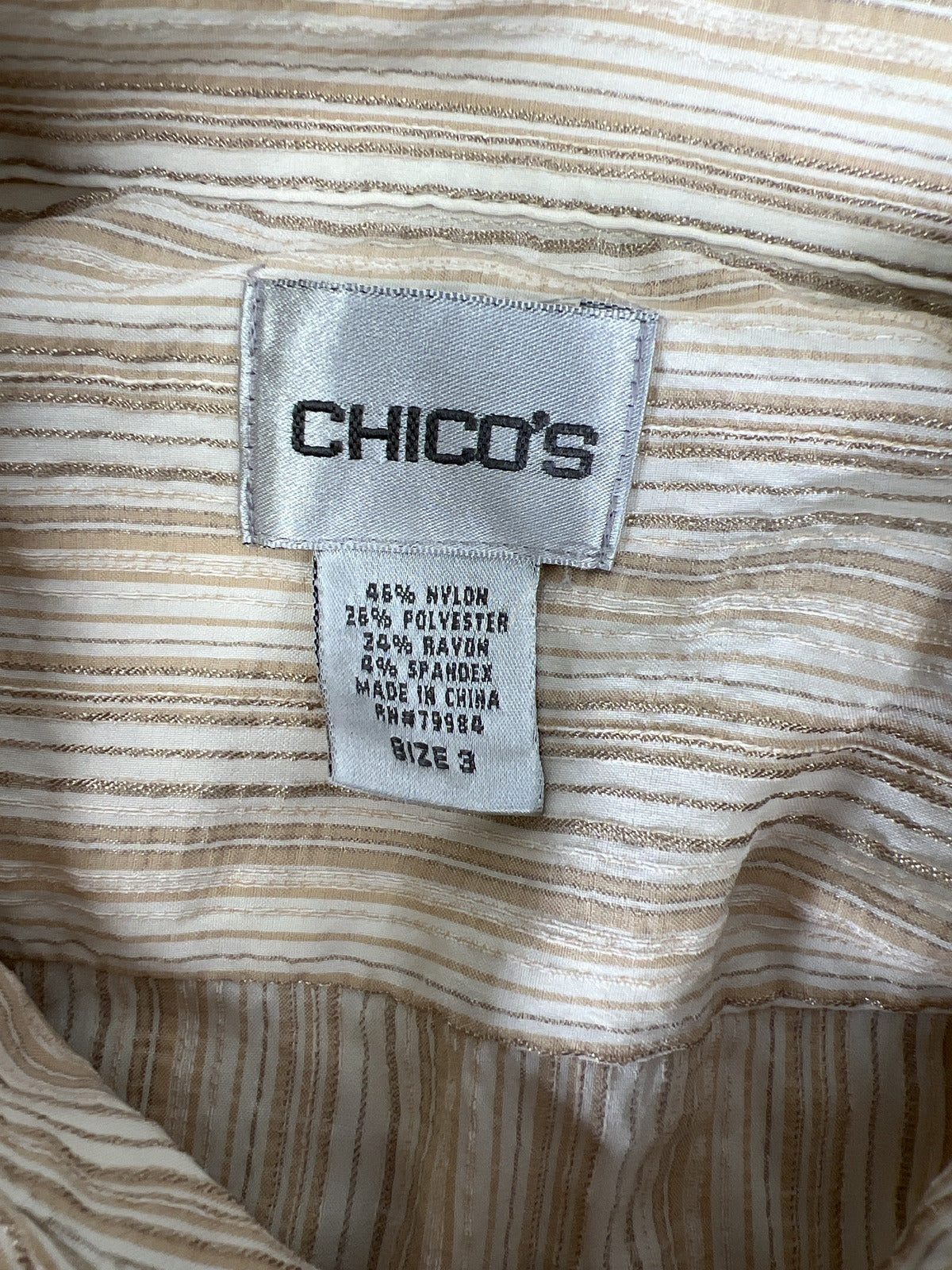 Chico’s Women’s Beige Metallic Long Sleeve Button Up Blouse - 3/XL
