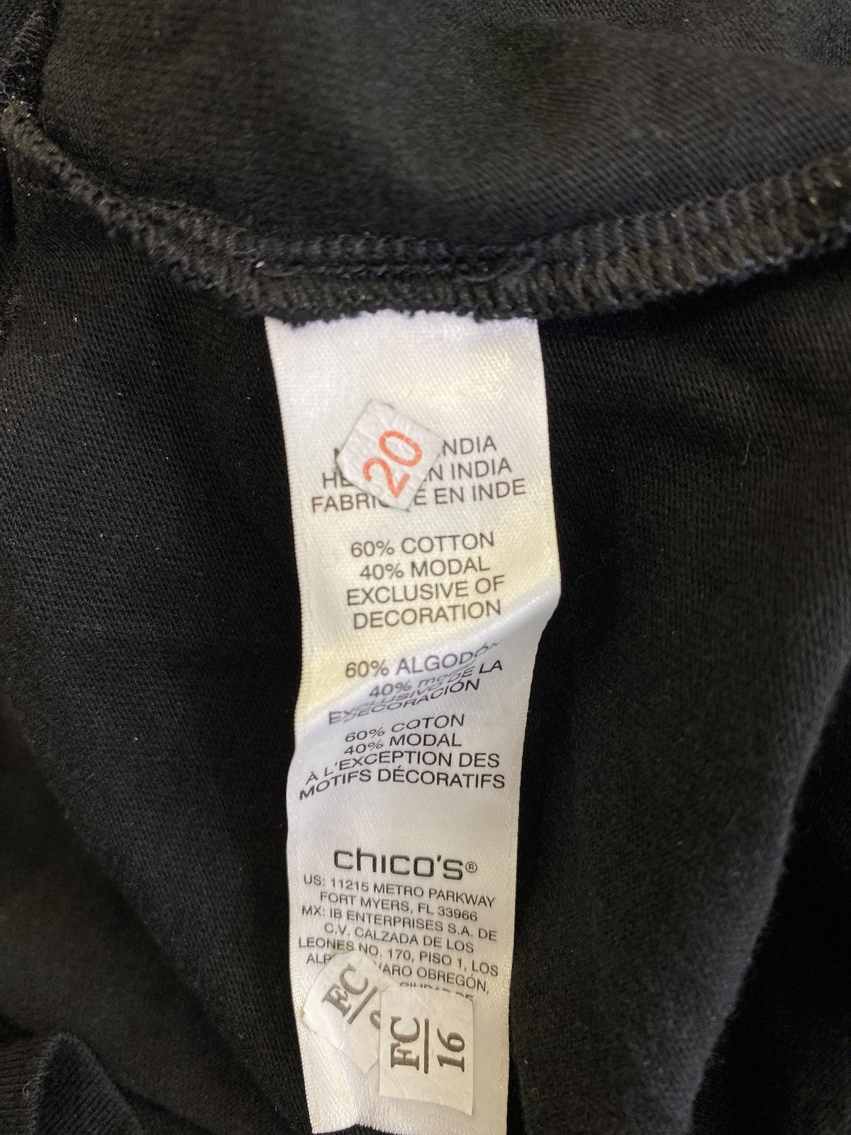Chico’s Women’s Black Embroidered Cap Sleeve T-Shirt - 2/US L