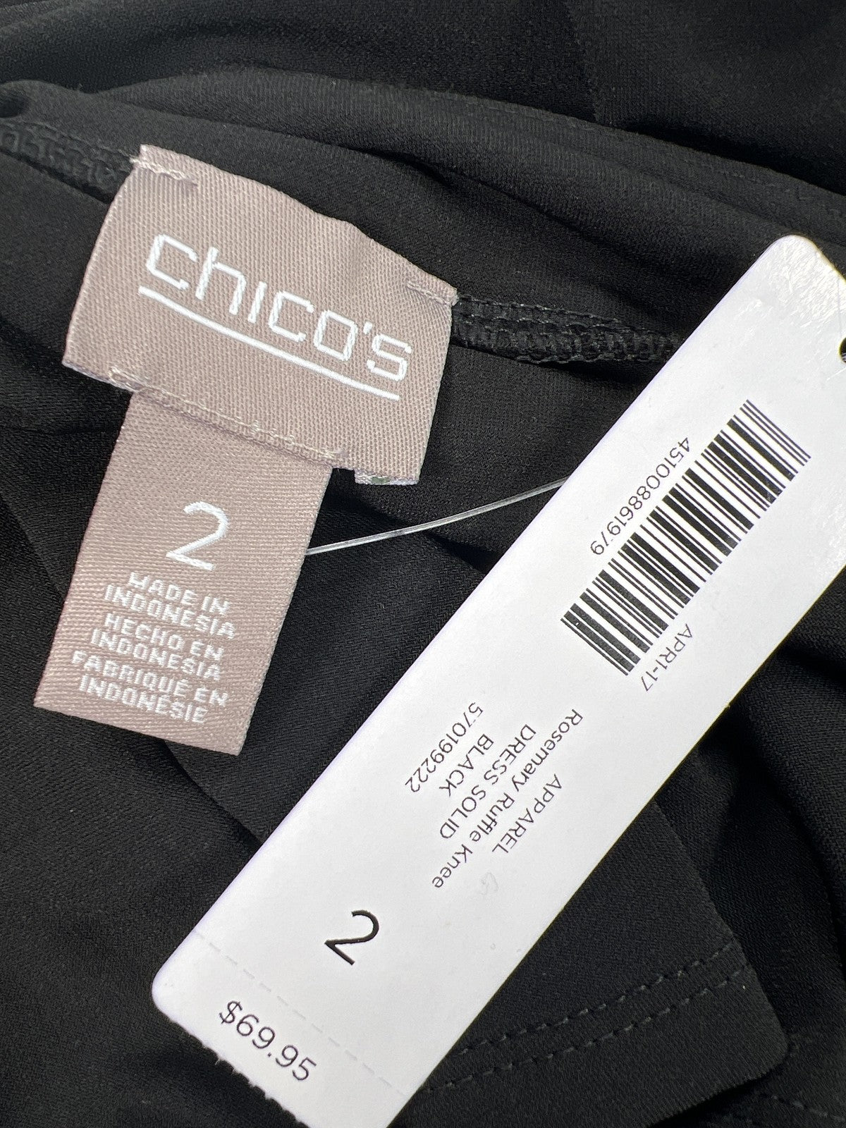 Chico’s Women’s Black Rosemary Ruffle Knee Length Dress - 2/US 12