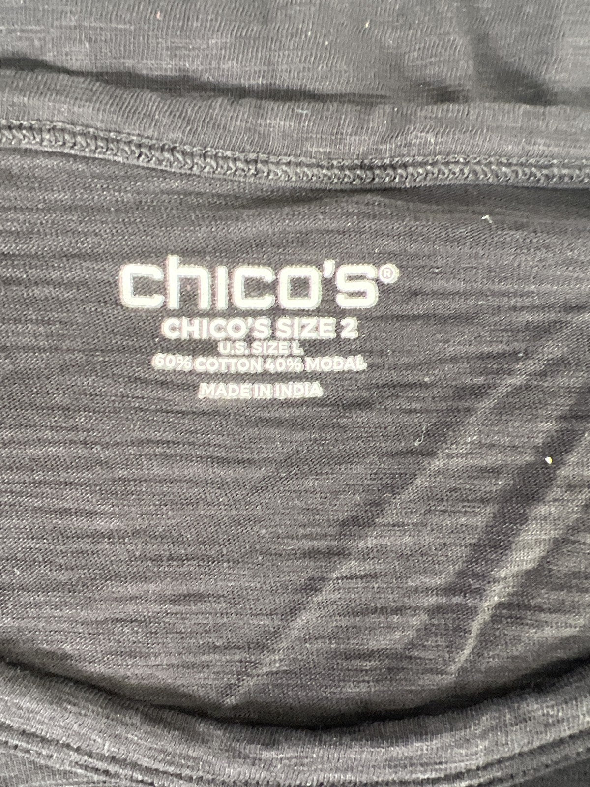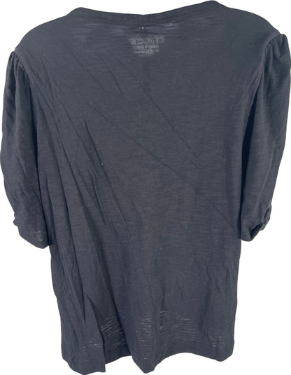 Chico’s Women’s Black Short Gathered Sleeve Slub T-Shirt - 2/US L
