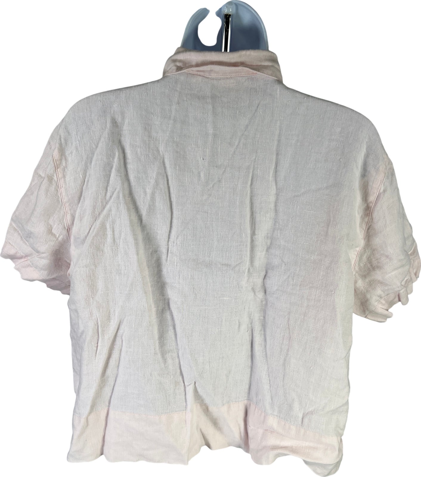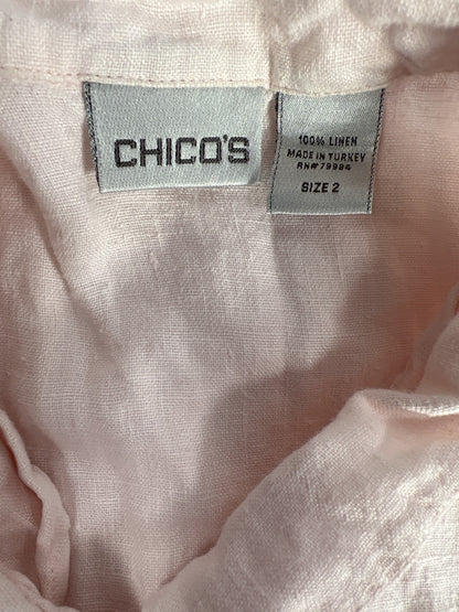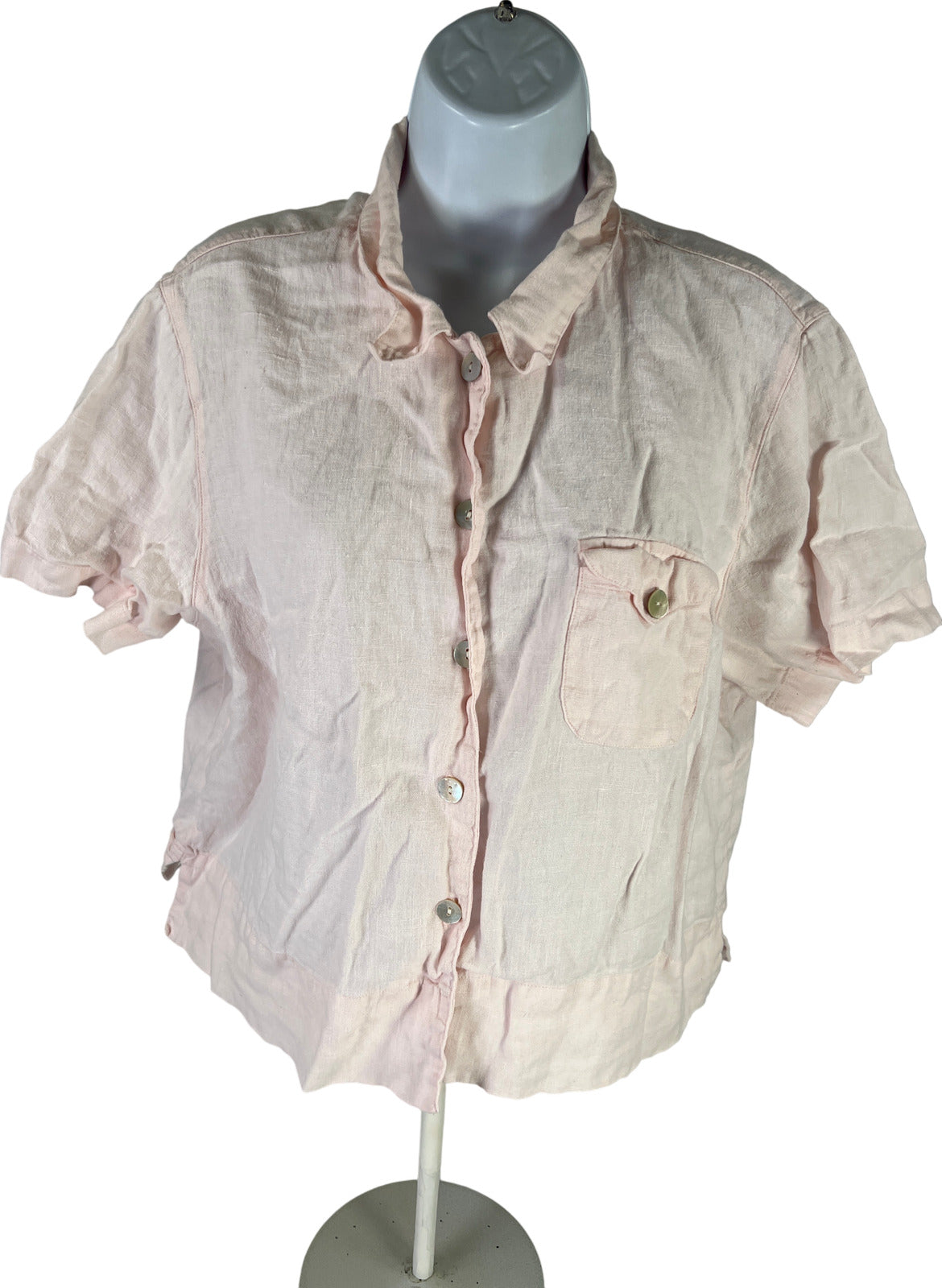 Chico’s Women’s Pink Linen Short Sleeve Button Up Shirt - 2/US L