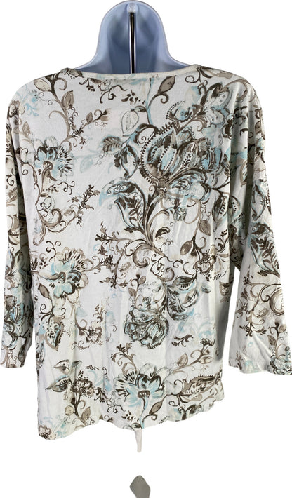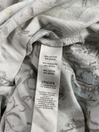 Chico’s Women’s White/Blue Paisley 3/4 Sleeve T-Shirt - 2/US L