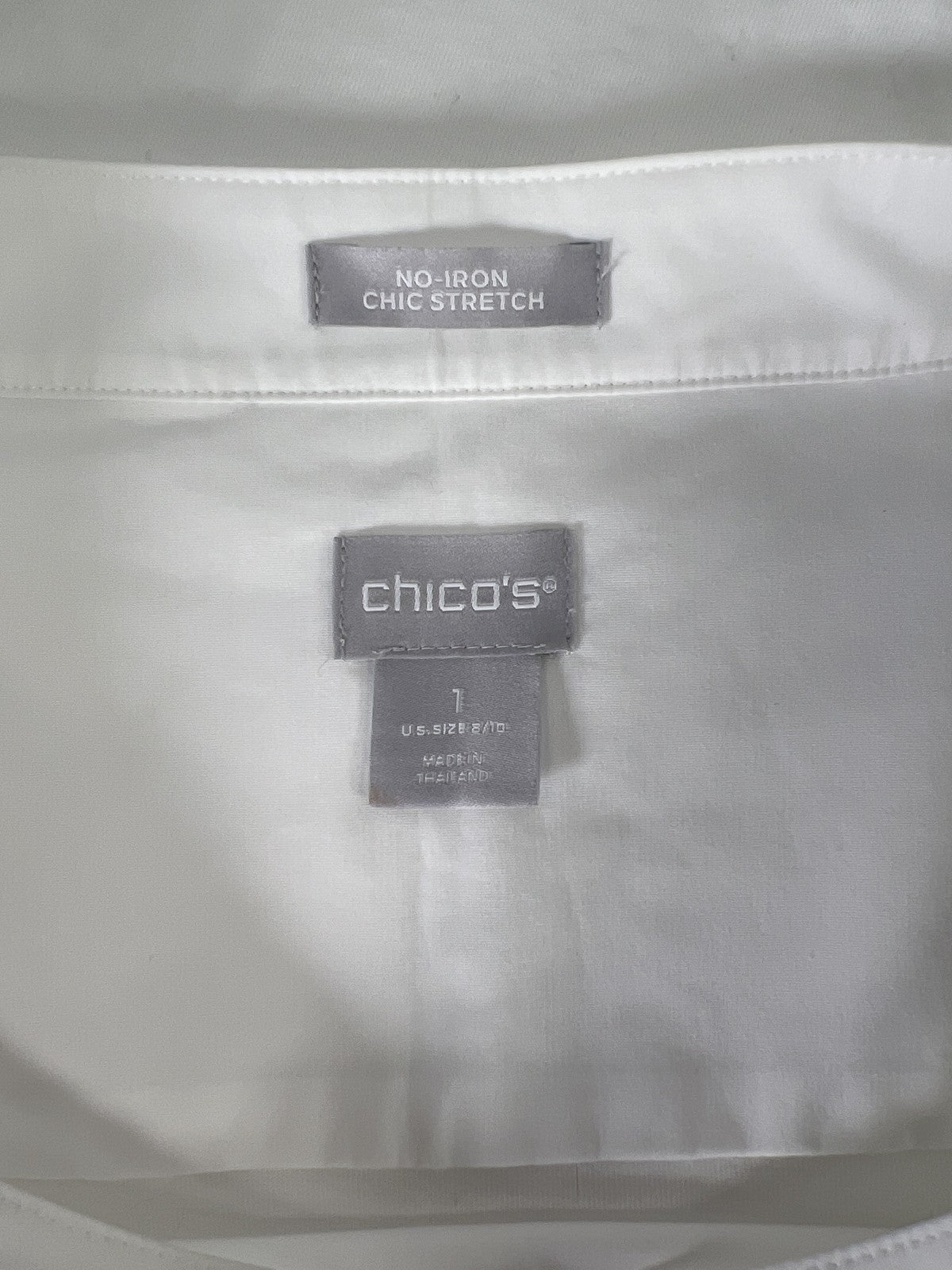 Chico’s Women’s White Non-Iron Chic Stretch Short Sleeve Shirt - 1/US 8/10