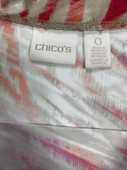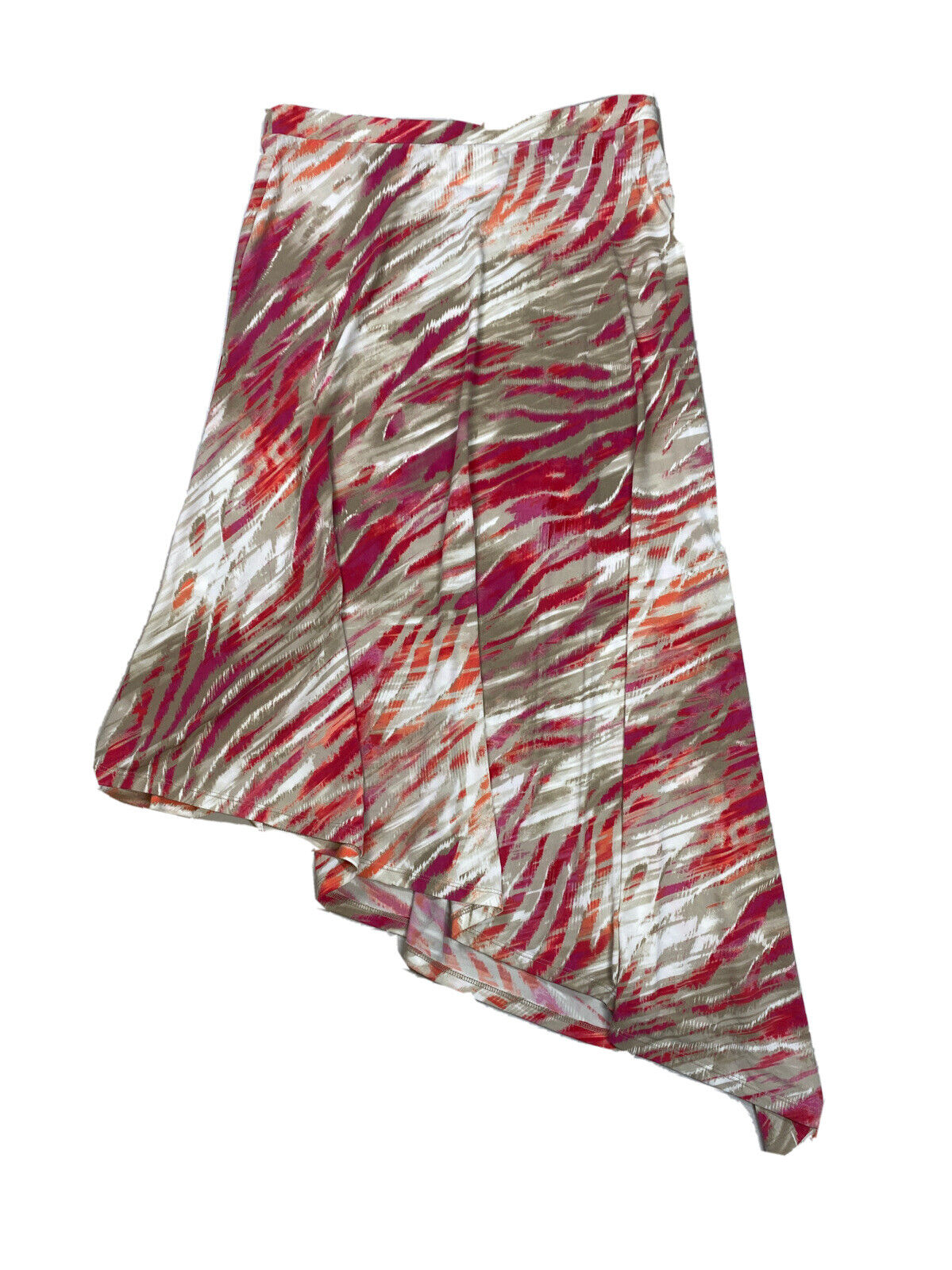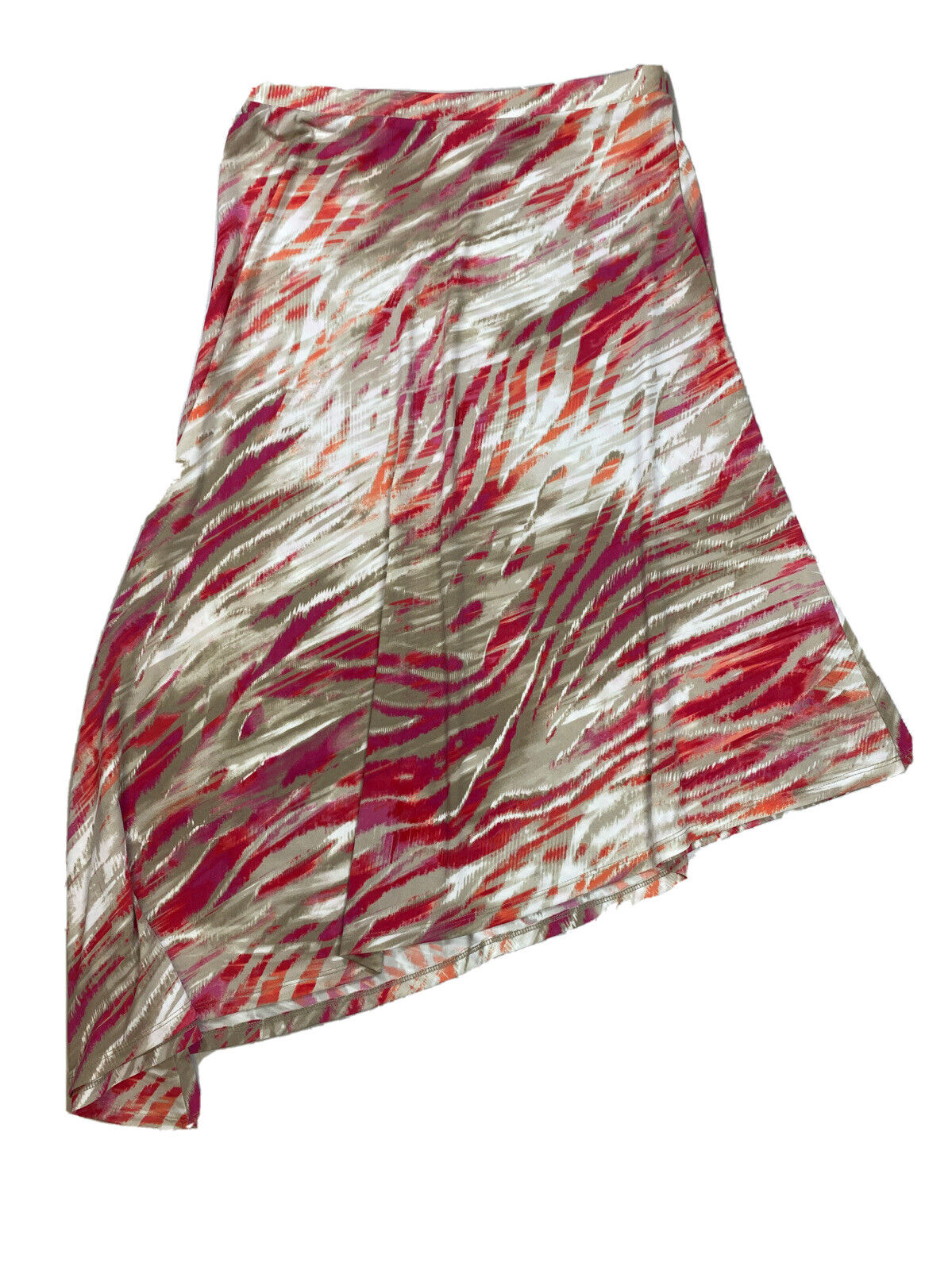 Chico's Women's Beige & Red Stretch Asymmetrical Pull On Skirt - 0/US 4