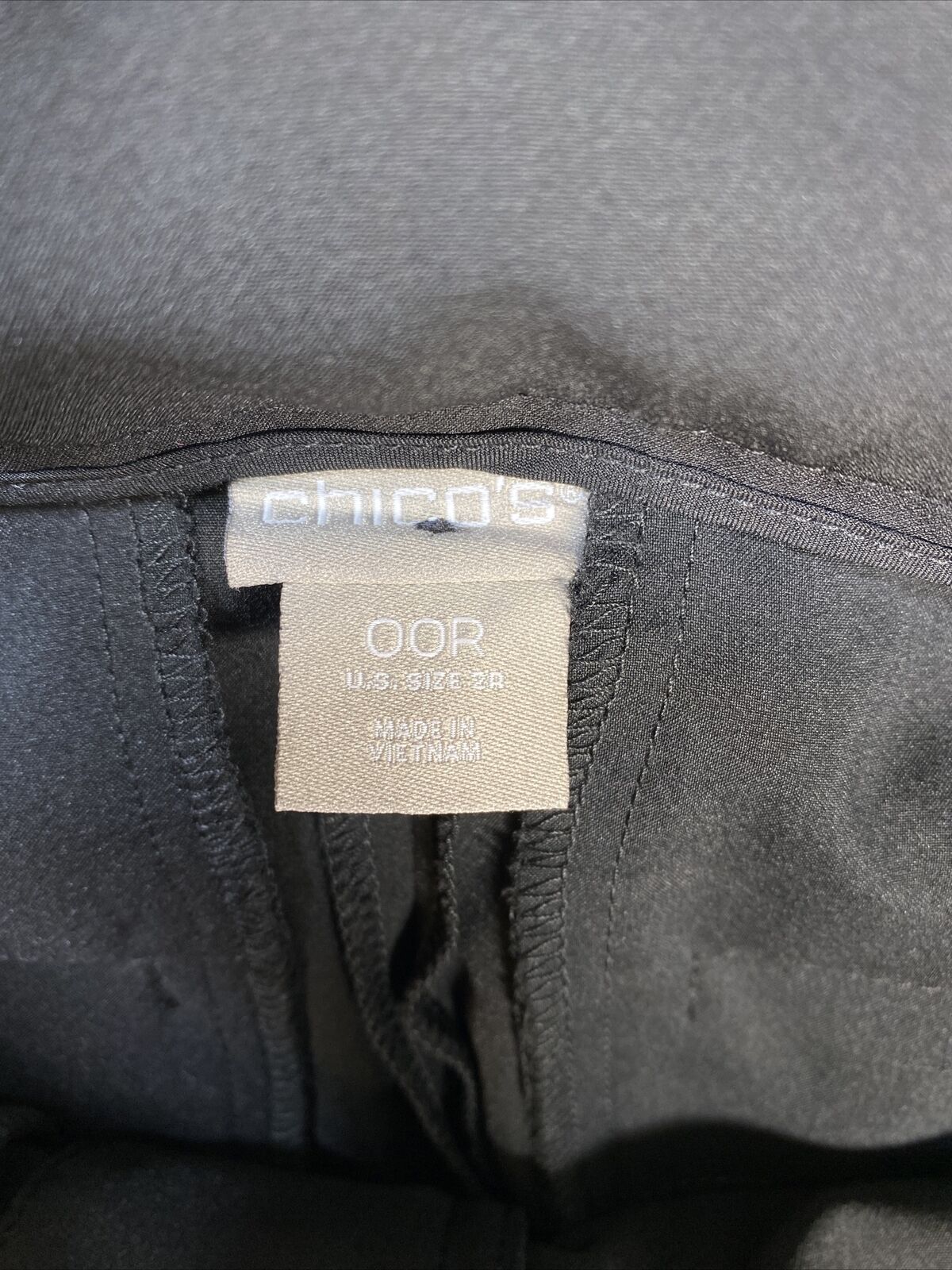 Chico's Women's Black Belted Straight Leg Cropped Dress Pants Sz 00R/2
