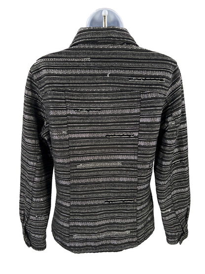 Chico's Women's Black Striped Shimmer Button Up Heavyweight Top - 0/US S