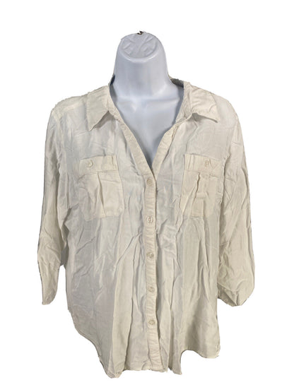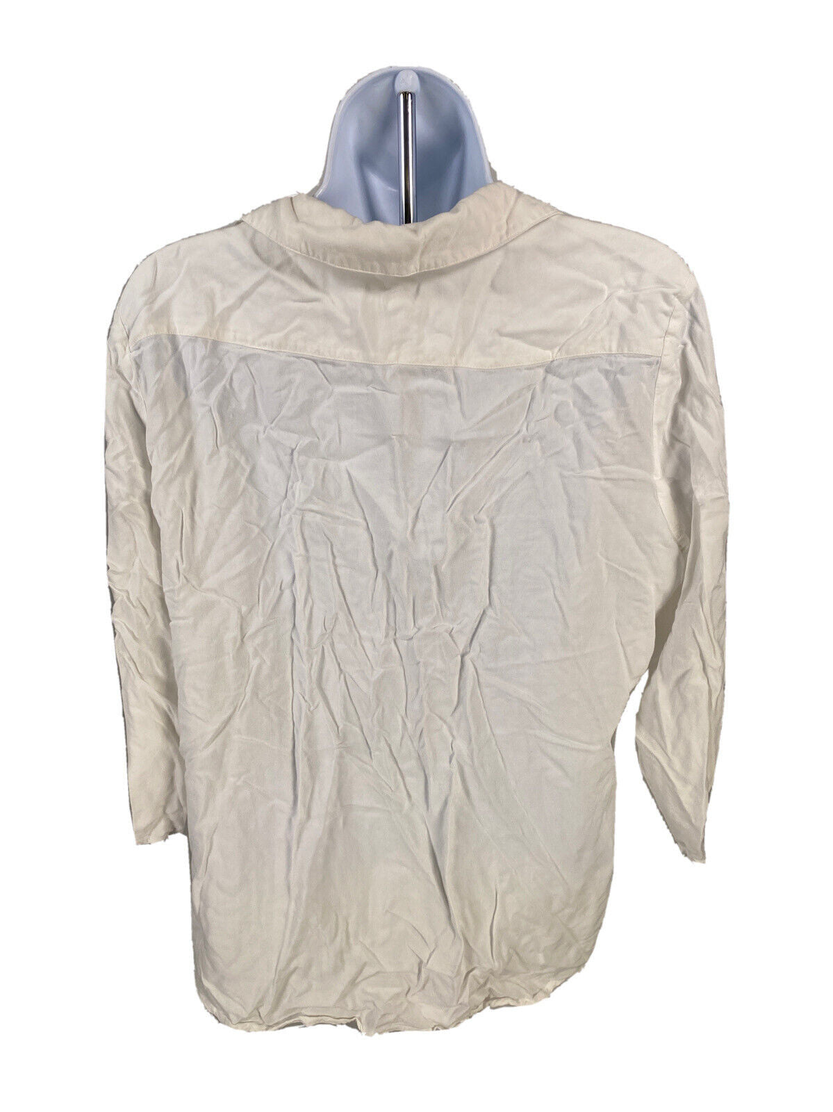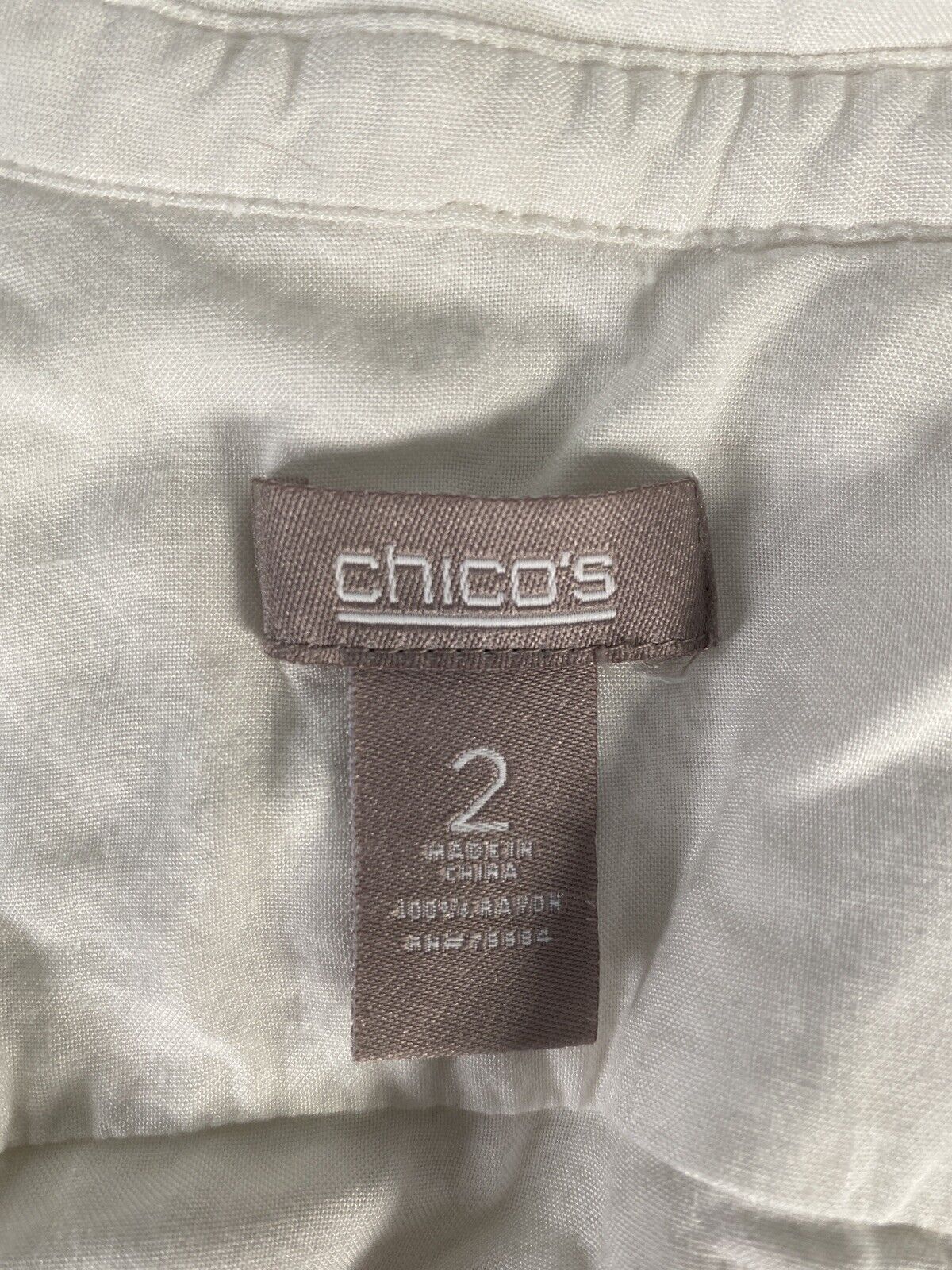 Chicos Women's White 3/4 Sleeve Button Up Rayon Blouse Sz 2/12
