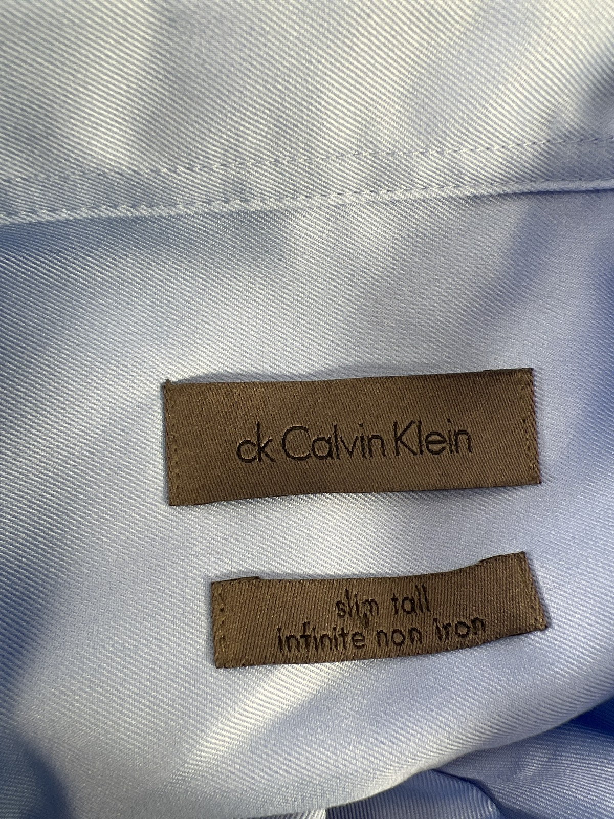 CK Calvin Klein Men’s Blue Non Iron Long Sleeve Slim Tall Button Up Shirt - 17