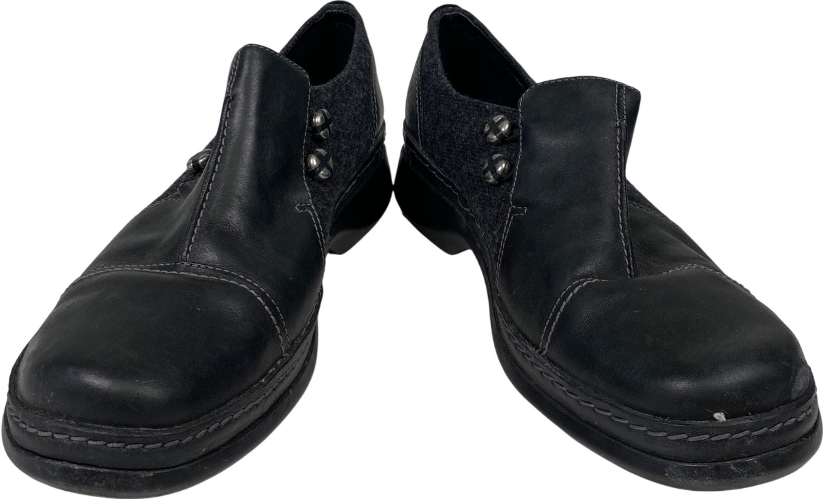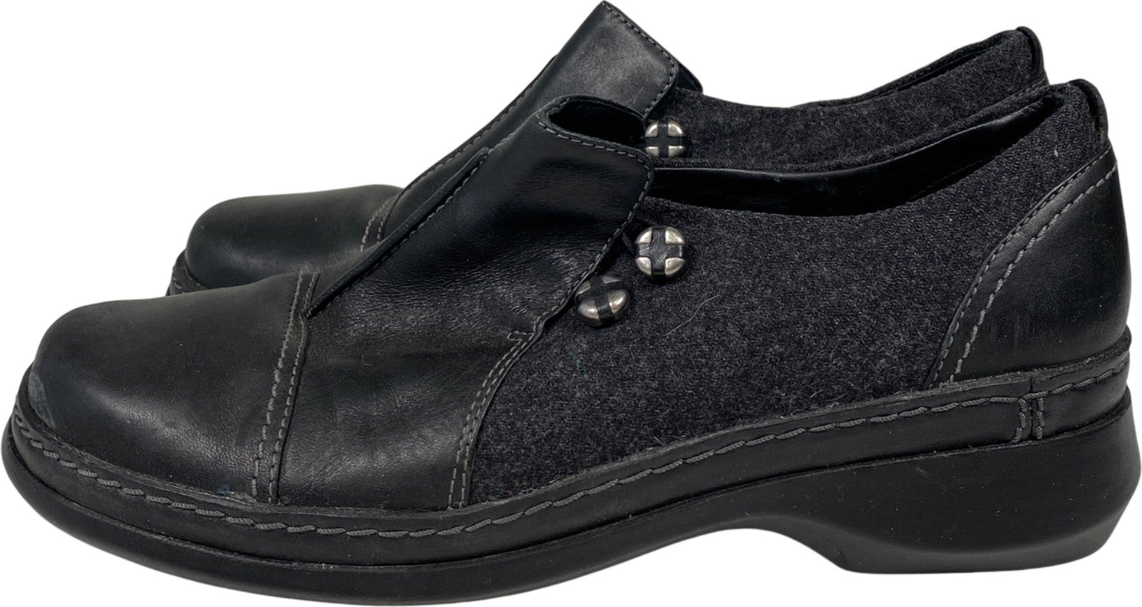 Clarks Women’s Black Leather Certina Ease Slip On Walking Shoes - 8