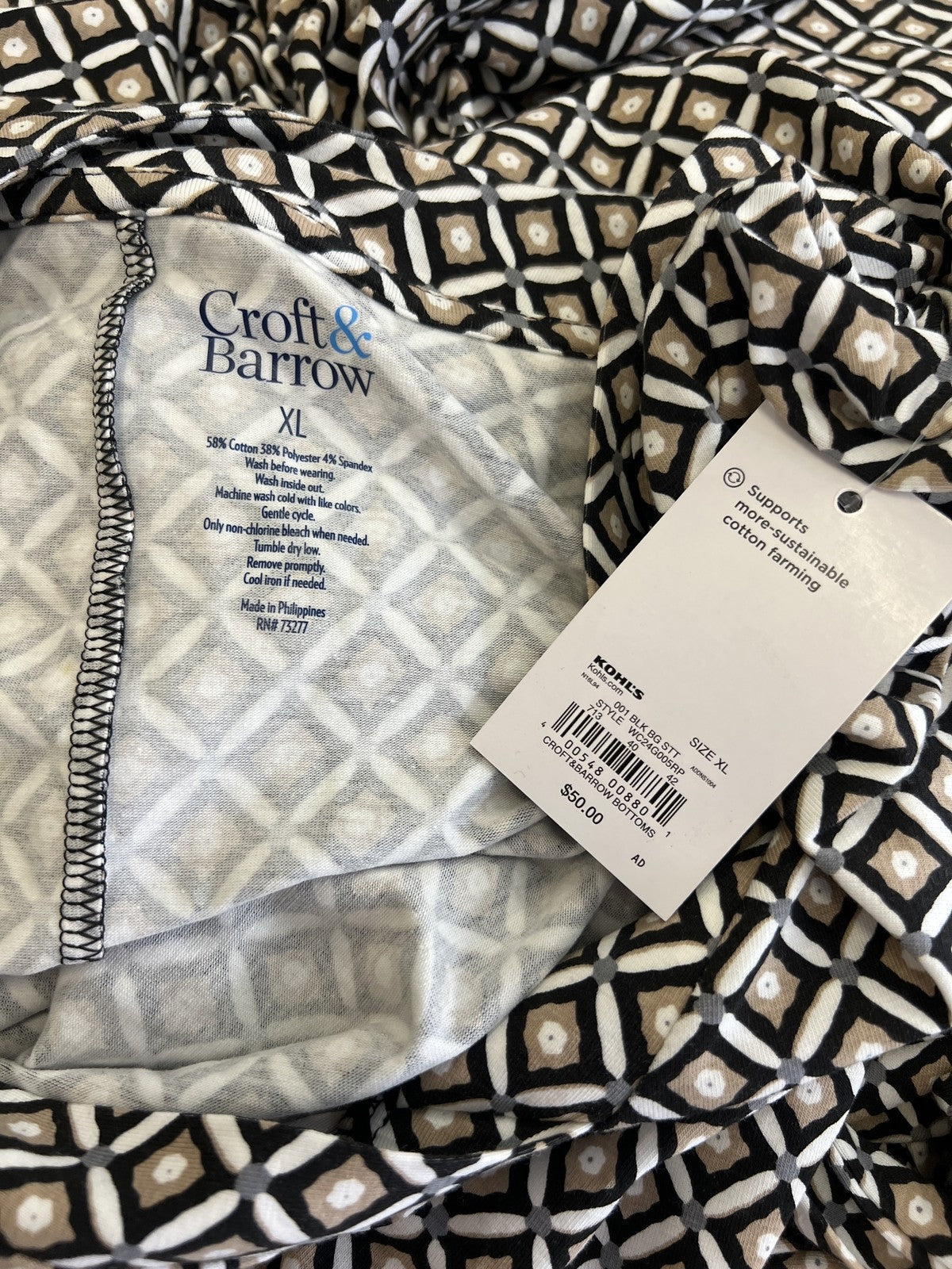 Croft & Barrow Women’s Brown Geometric Tie Front Full Length Dress - XL