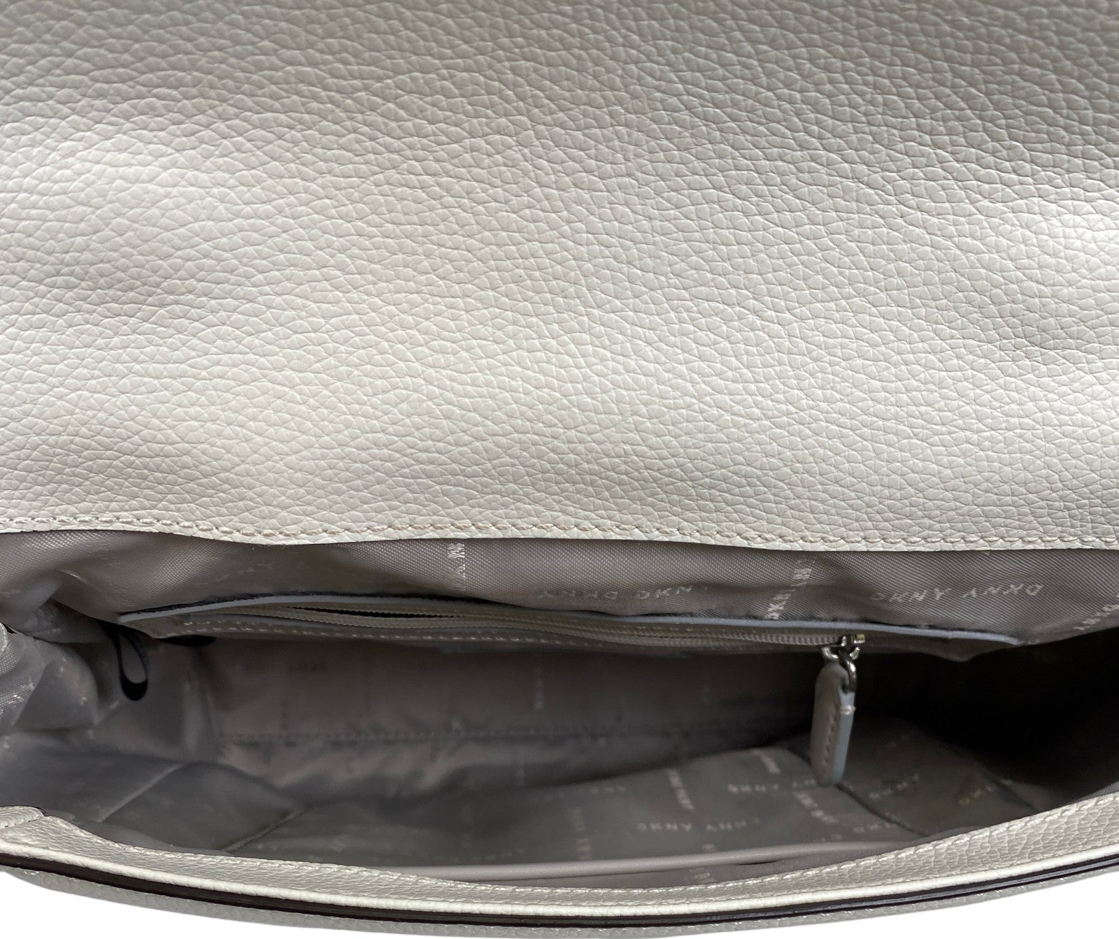 DKNY White Cow Leather Foldover Small Adjustable Backpack