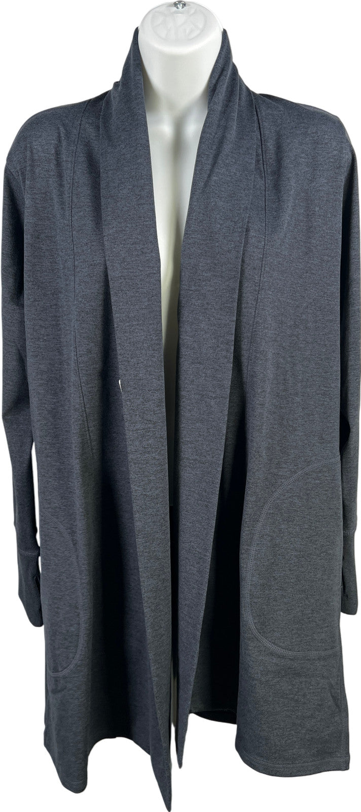 Eddie Bauer Women’s Blue Train Ascent Long Line Twilit Open Wrap Top - M Petite