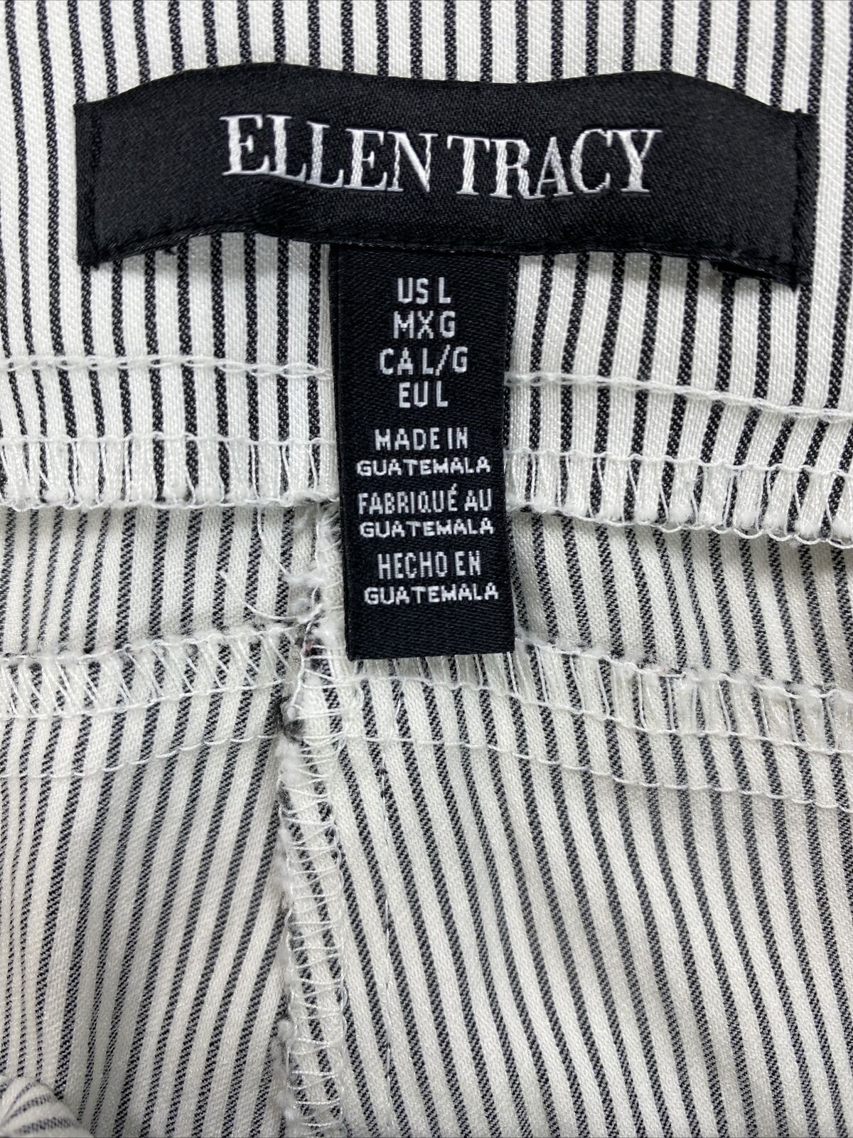 Ellen Tracy Women's White Striped Pull On Slim Fit Pants - L