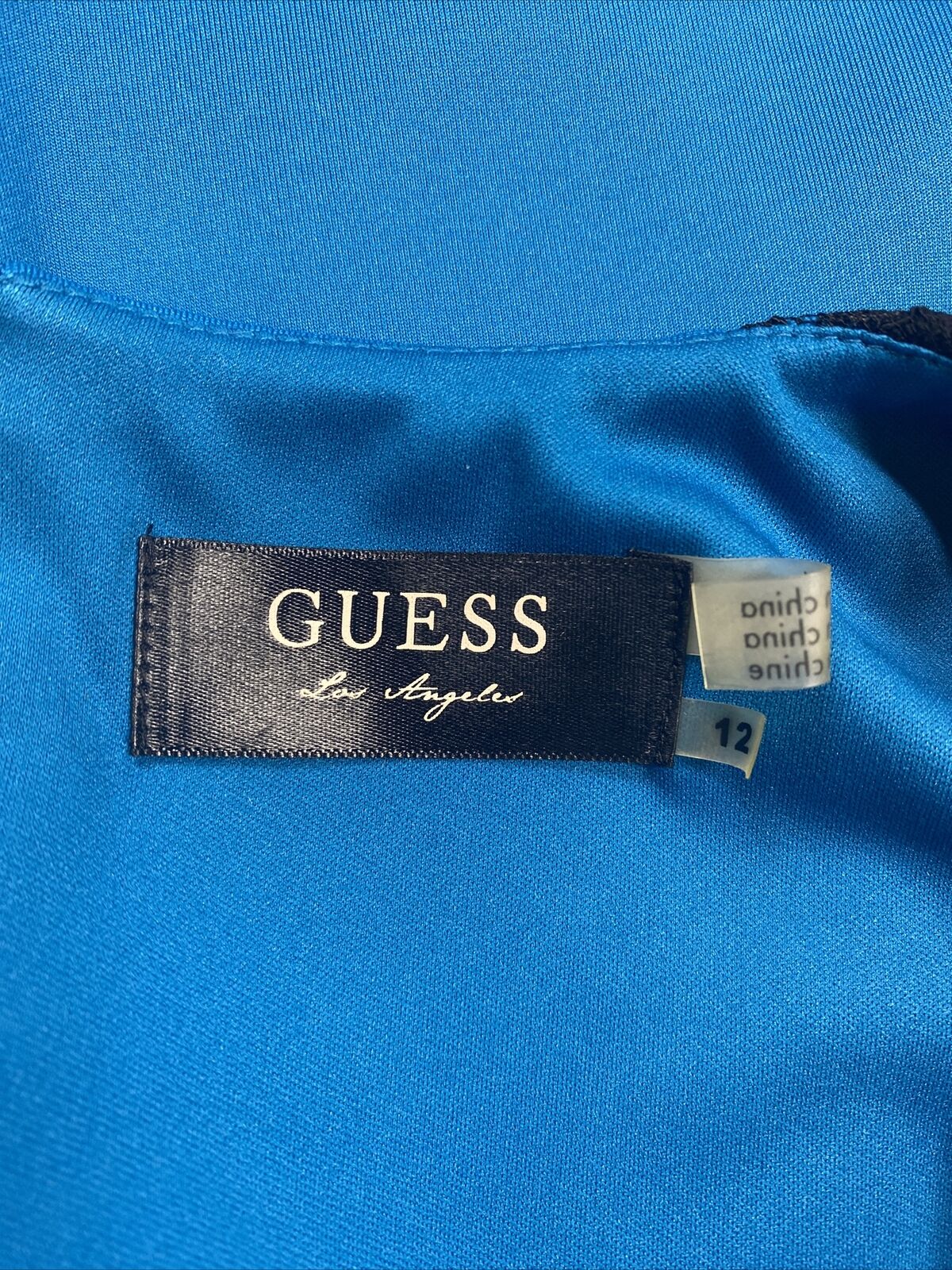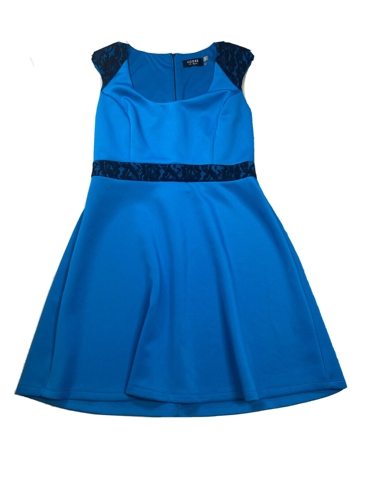 Guess Women's Blue Lace Accent Sleeveless Shift Dress - 12