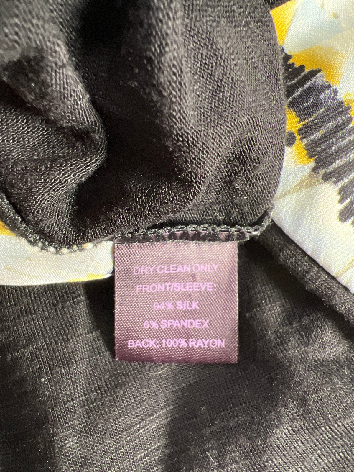 Hale Bob Women’s Yellow & Black Tie Front Roll Tab Sleeve Top - XS
