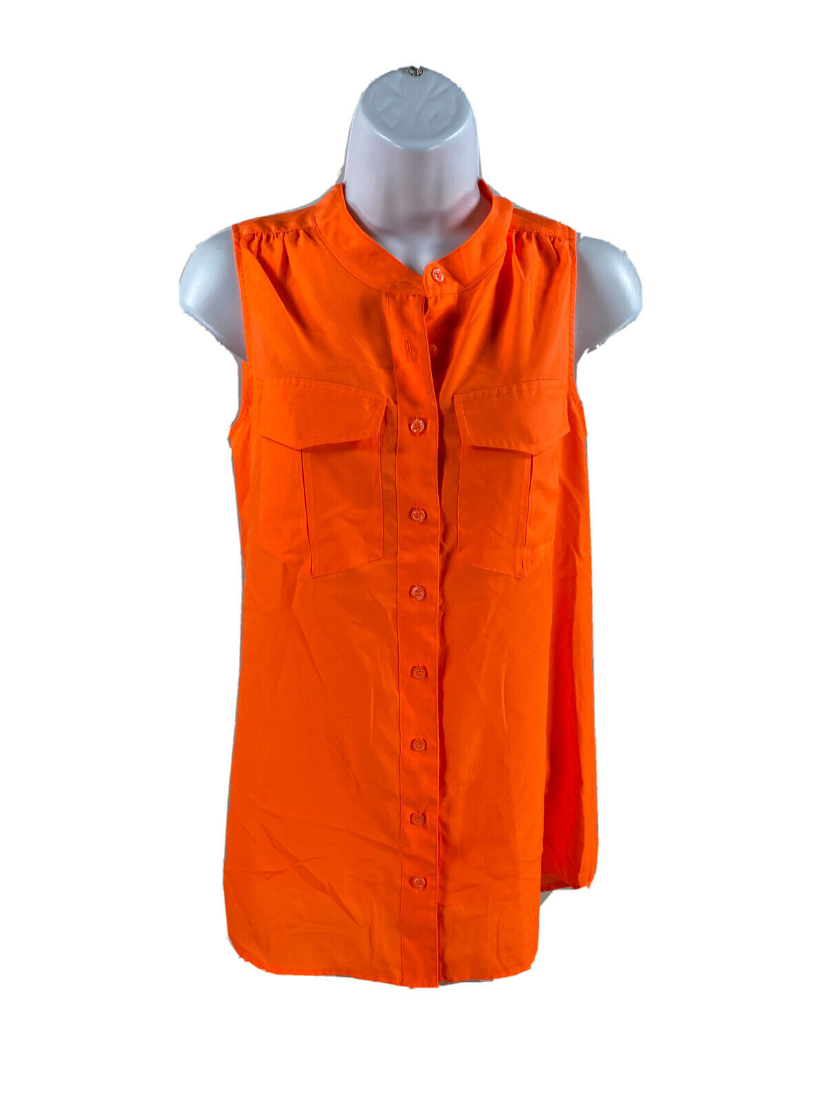 J.Crew Women's Bright Orange Draped Pocket Sleeveless Blouse - 0