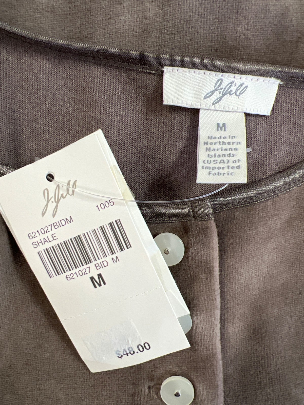J.Jill Women’s Brown Shale Velour Lace Trim Button Up Cardigan Sweater - M