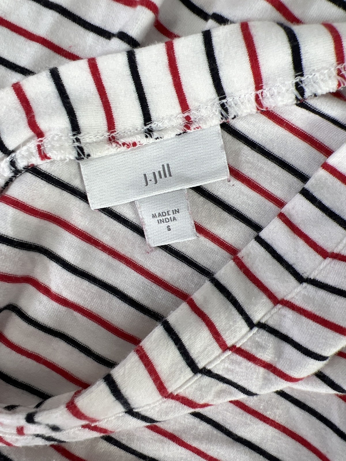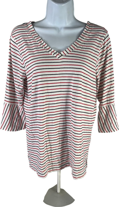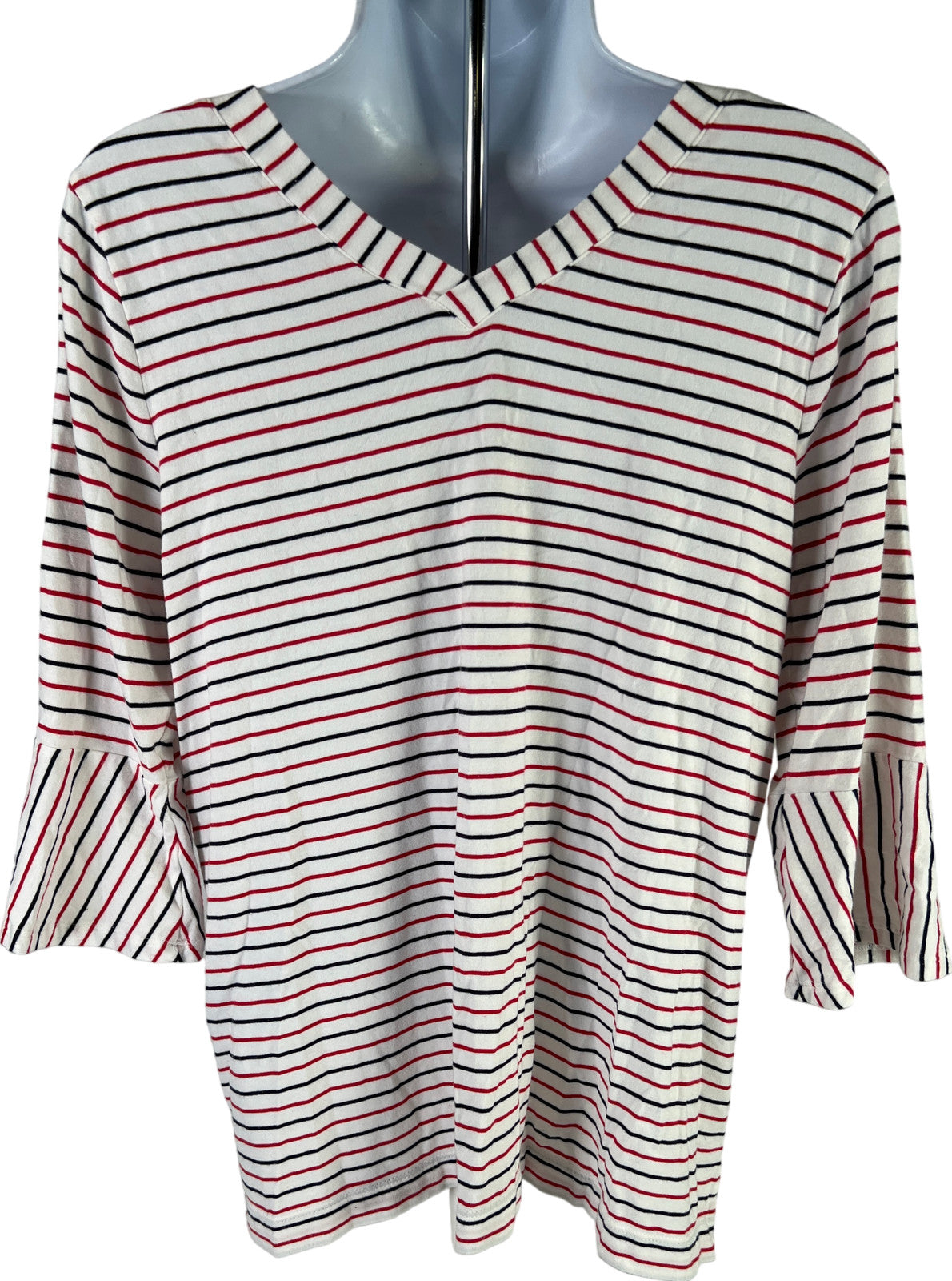 J.Jill Women’s White/Red Striped 3/4 Bell Sleeve V-Neck T-Shirt - S