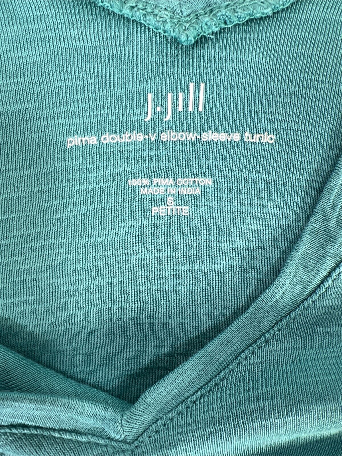 J.Jill Women's Blue Double V 1/2 Sleeve Tunic T-Shirt - S Petite