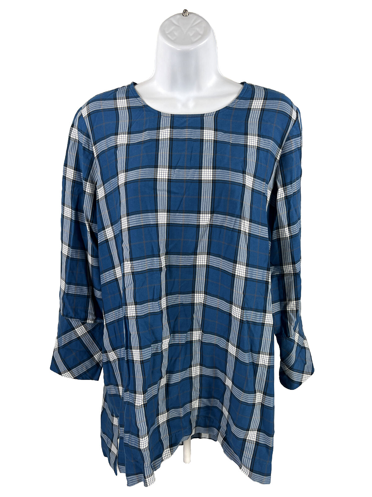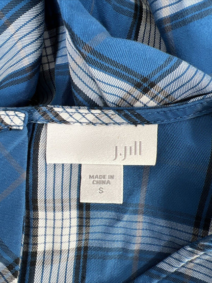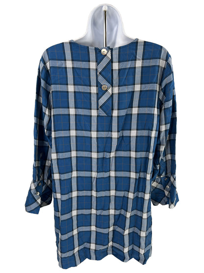 J.Jill Women's Blue Plaid Long Sleeve Hi-Low Blouse - S