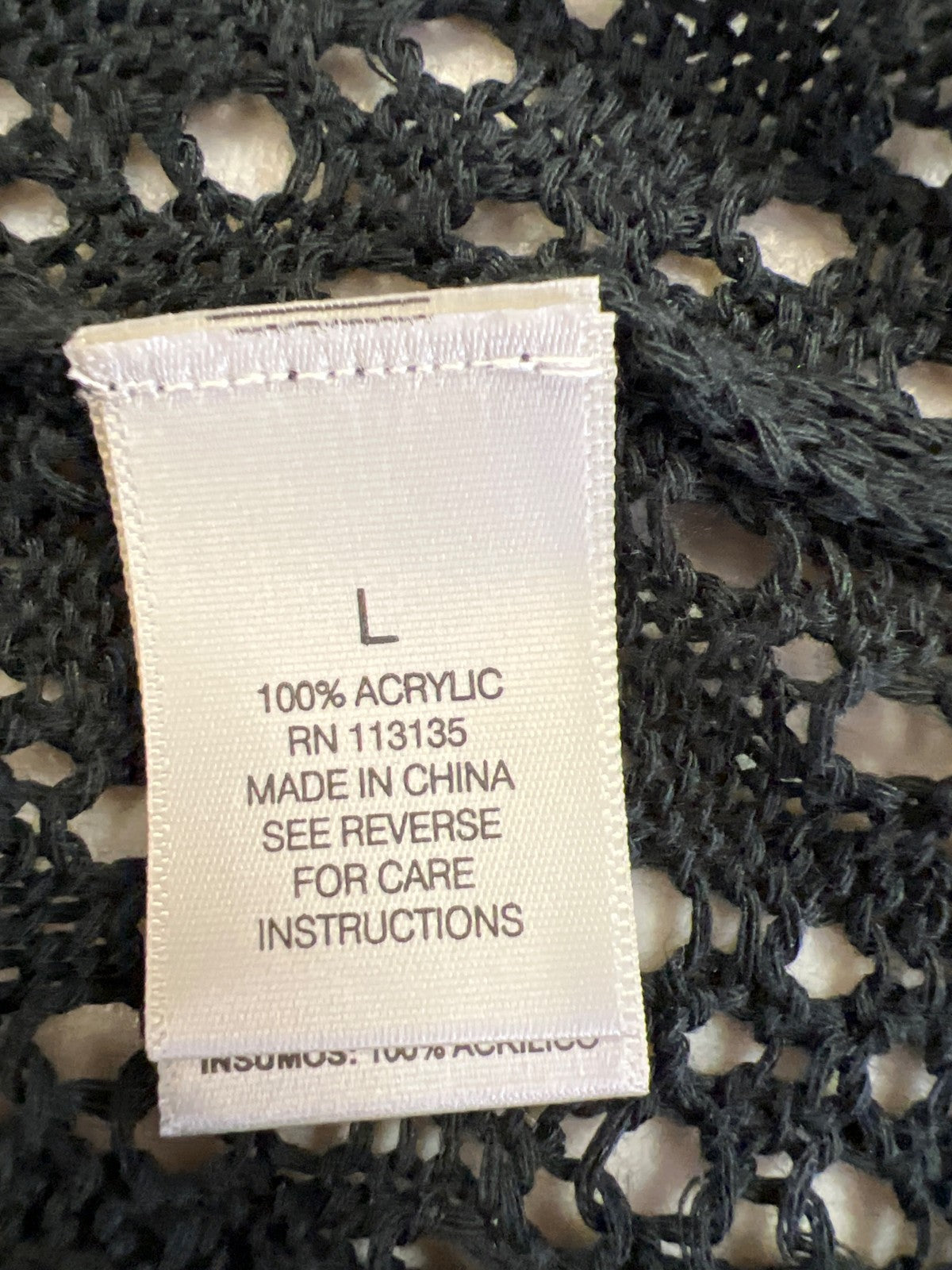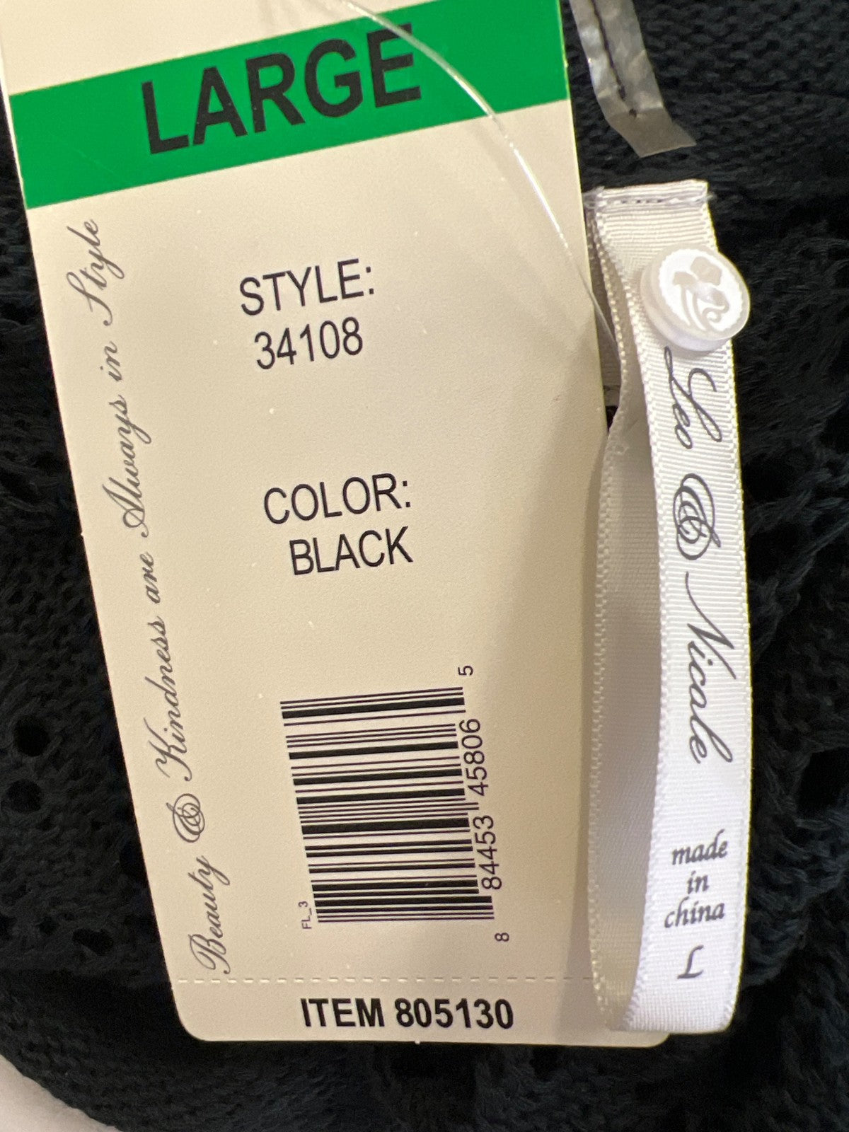 Leo and Nicole Women’s Black Open Knit 1/2 Sleeve Cardigan Sweater - L