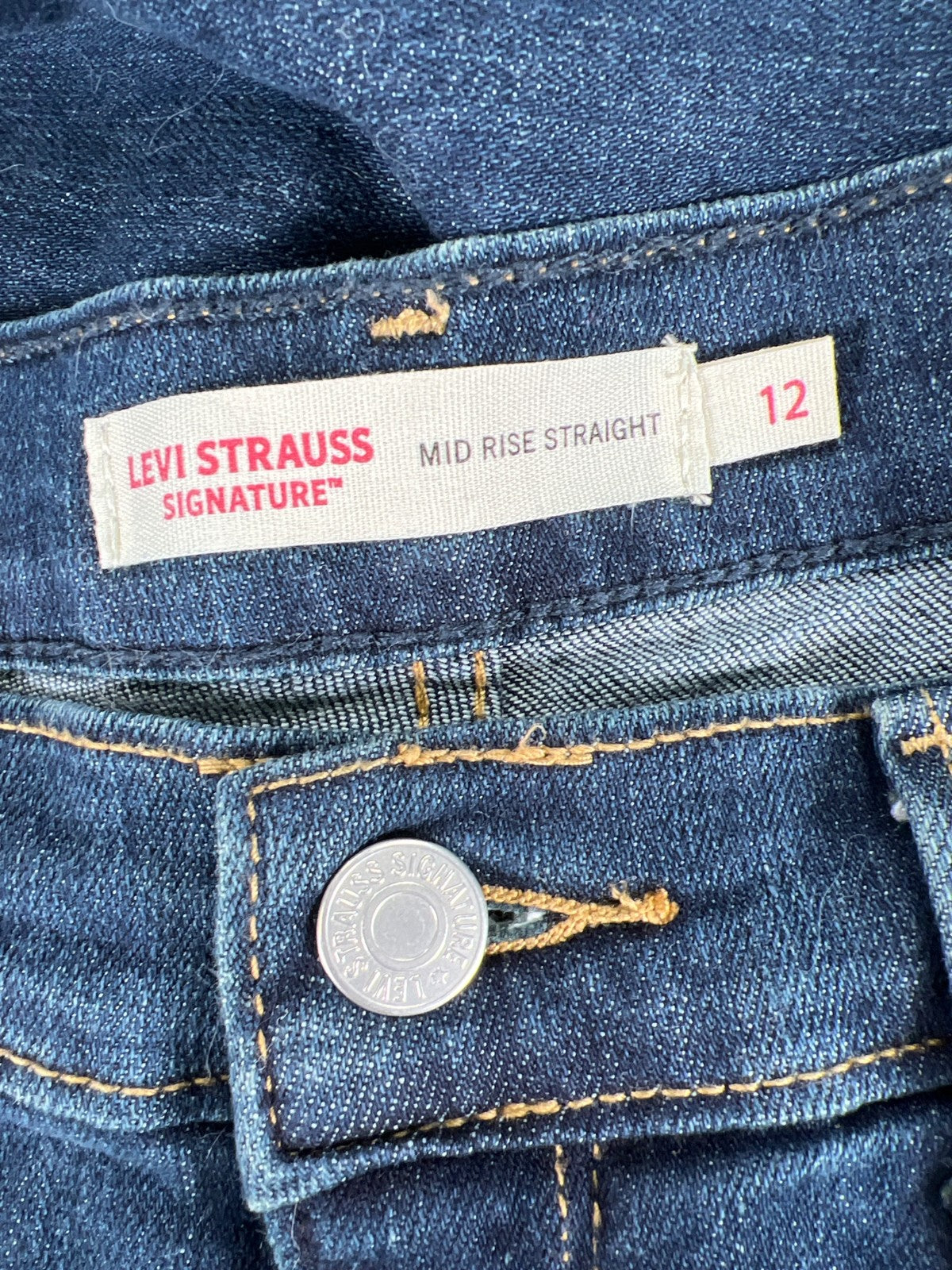 Levi Signature Women’s Dark Wash Mid Rise Straight Jeans - 12
