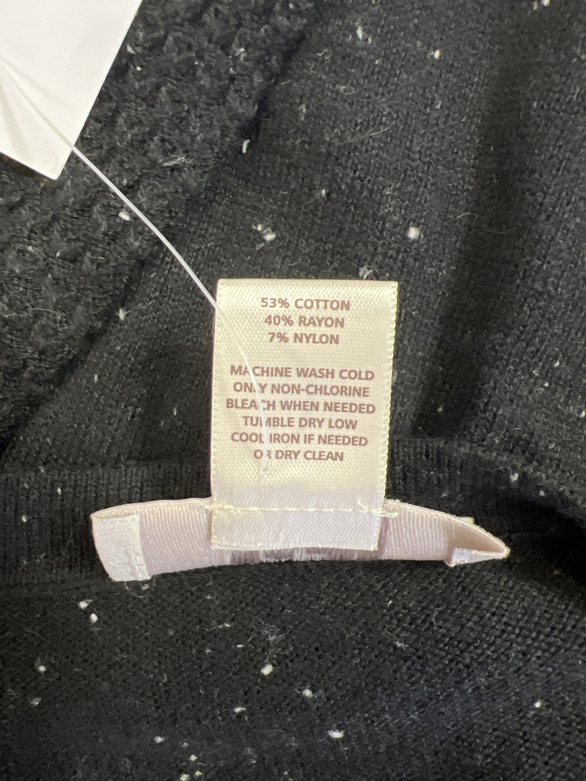 LOFT Women’s Black Waffle Knit Sleeve Long Sleeve Sweater - XL