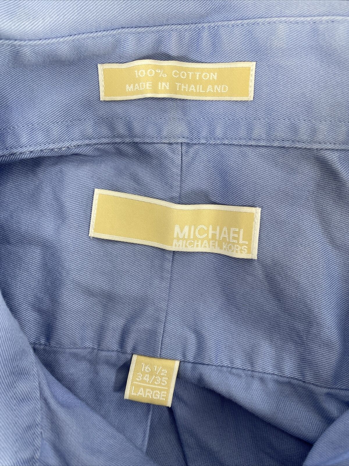 Michael Kors Men's Blue Cotton Long Sleeve Button Up Shirt - 34/35