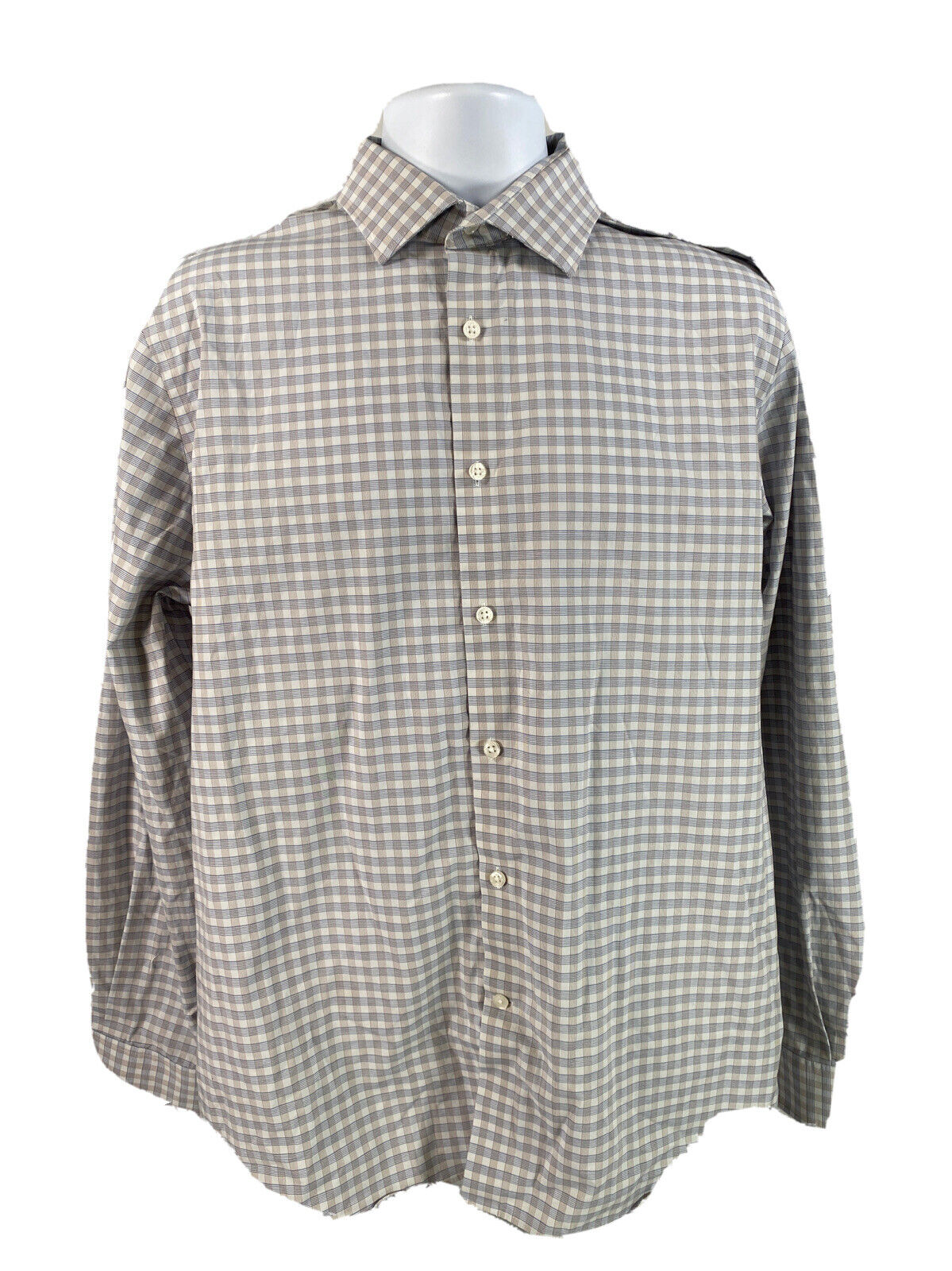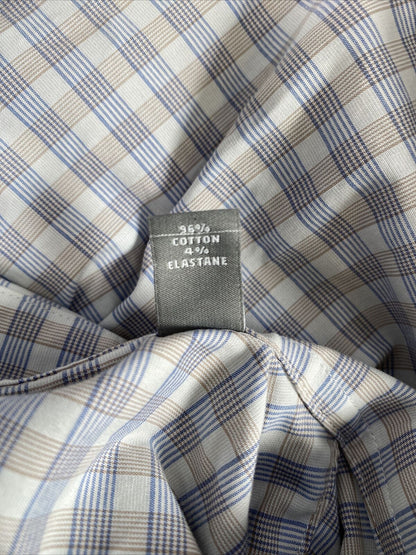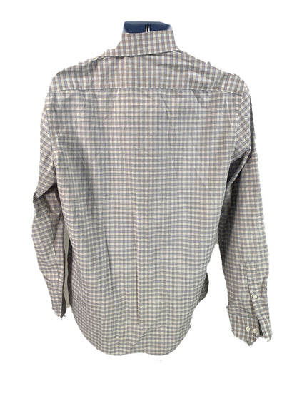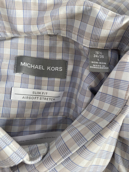 Michael Kors Men's Blue/Gray Slim Fit Airsoft Button Up Dress Shirt-34/35