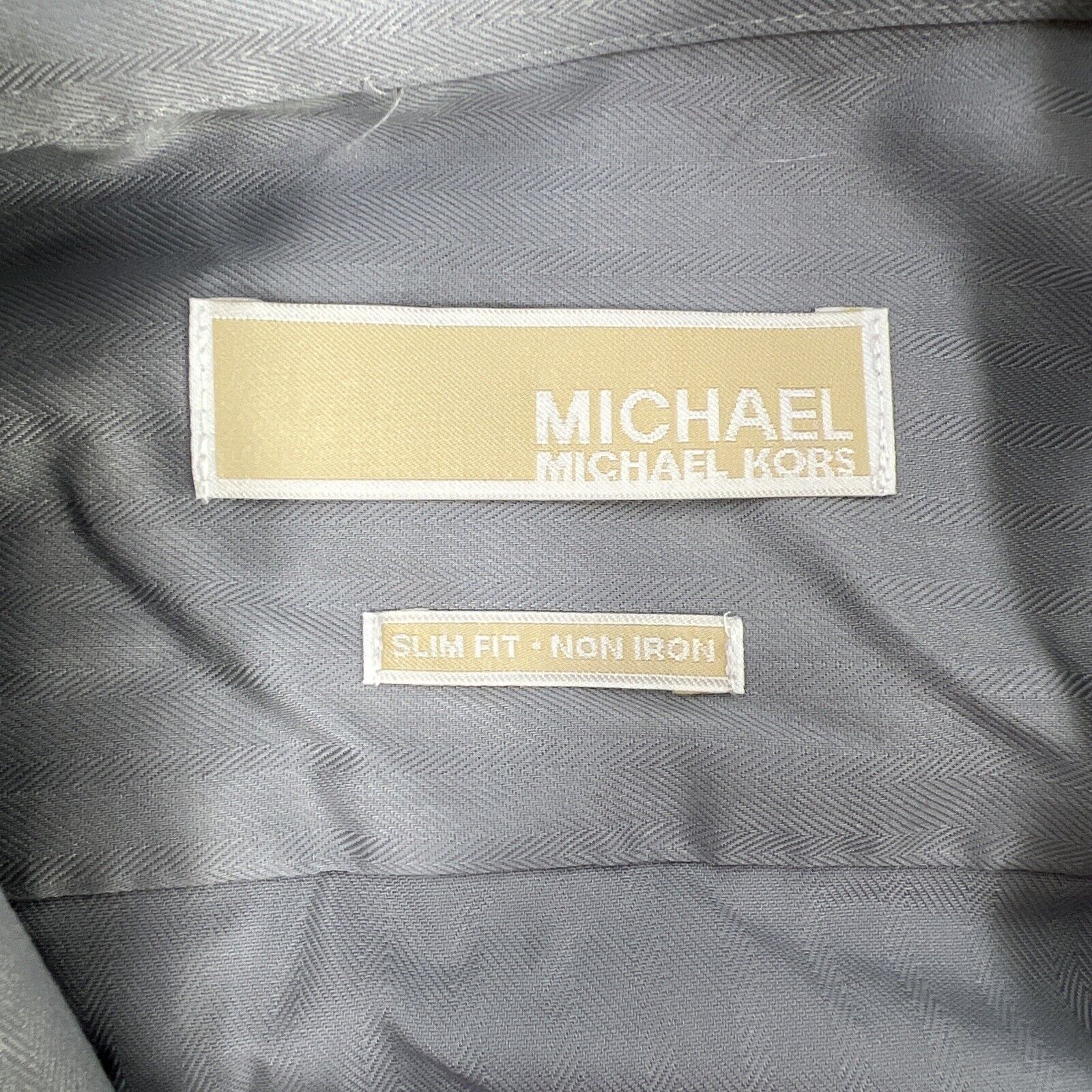 Michael Kors Men's Gray Long Sleeve Slim Fit Button Up Shirt - 34/35
