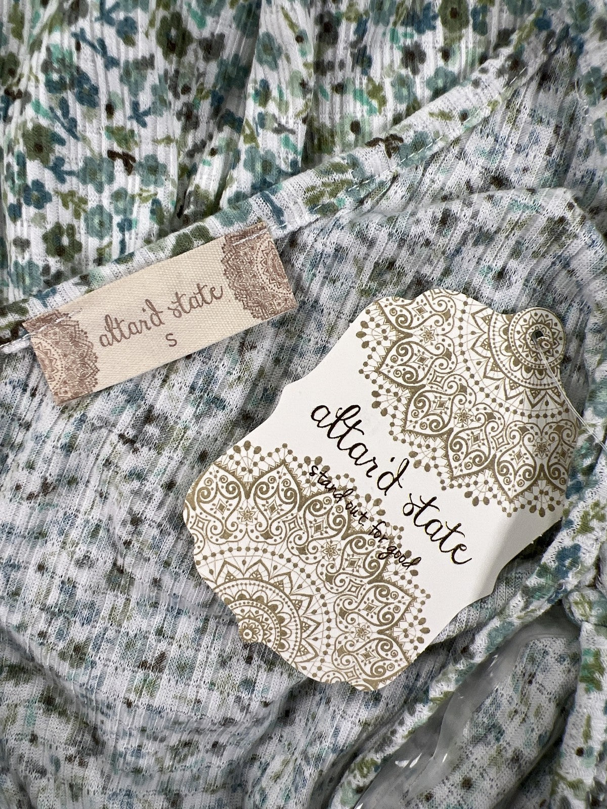 NEW Altar’d State Women’s Blue/Green Floral Button Accent Sleeveless Jumper - S