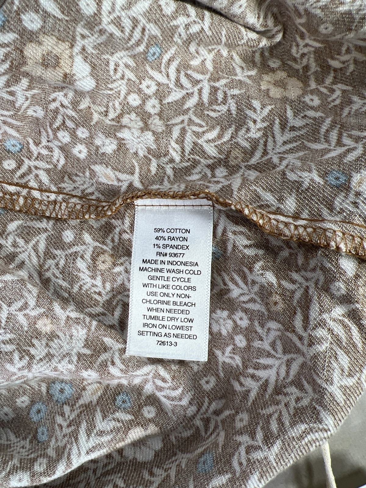 NEW ANA Women’s Brown Floral V-Neck Wrist Length Sleeve Blouse - L